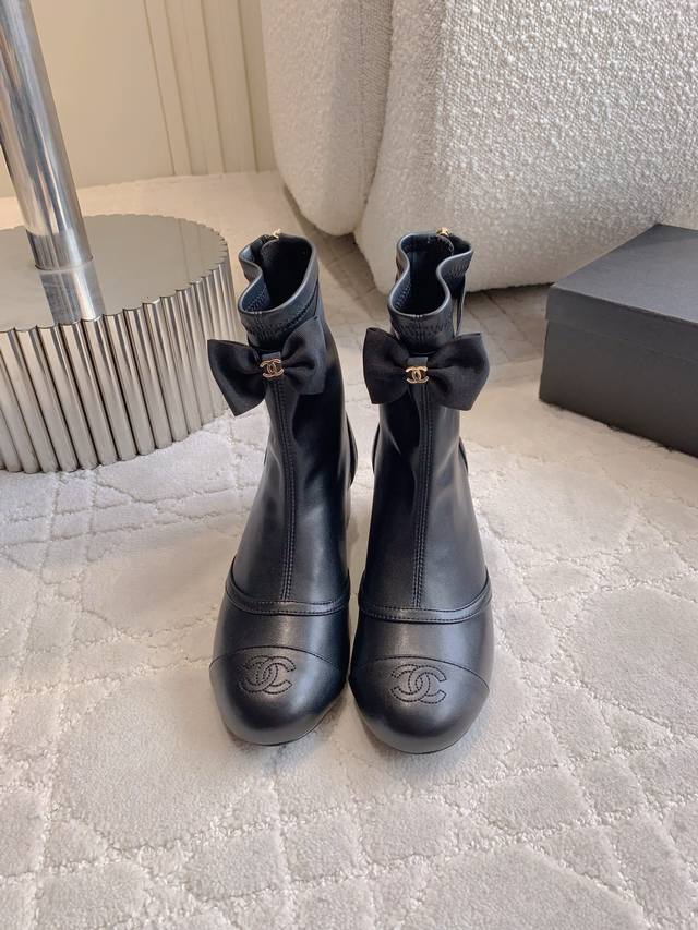 Mesh and Leather Chanel New Mesh Bow Ankle Boots. Recommended by many celebrities and fashion bloggers, these sweet colors are sure to capture my heart. They look incredibly sophisticated on! Mesh upper, sheepskin insole, 5cm sheepskin heel, Italian genuine leather sole. Sizes 35-39, 40, 41 (custom made).
