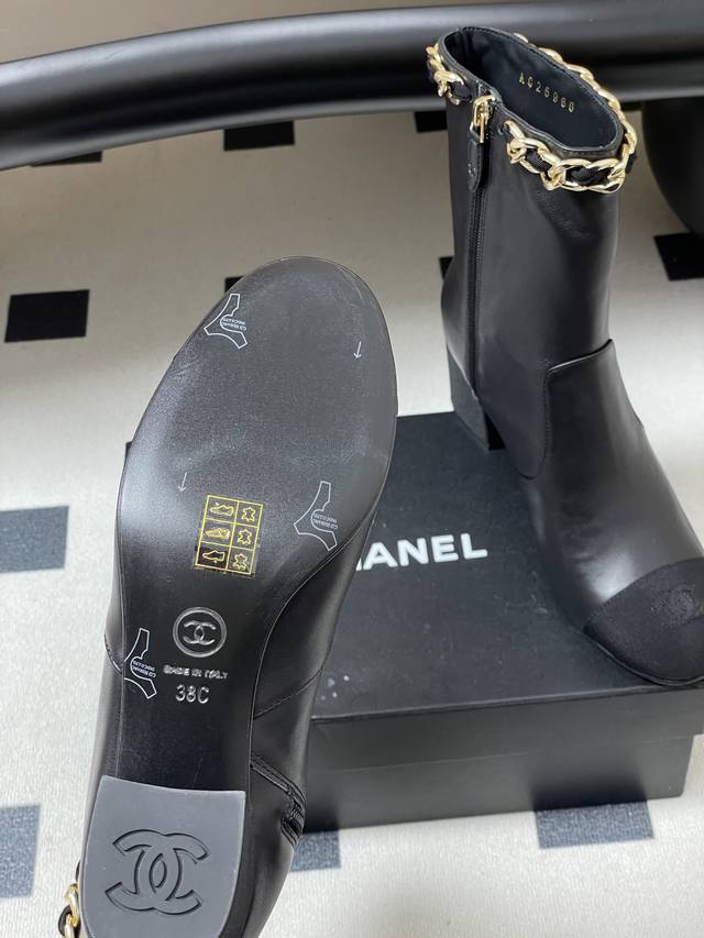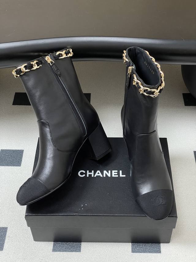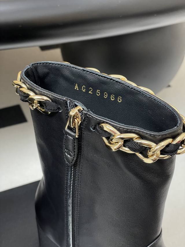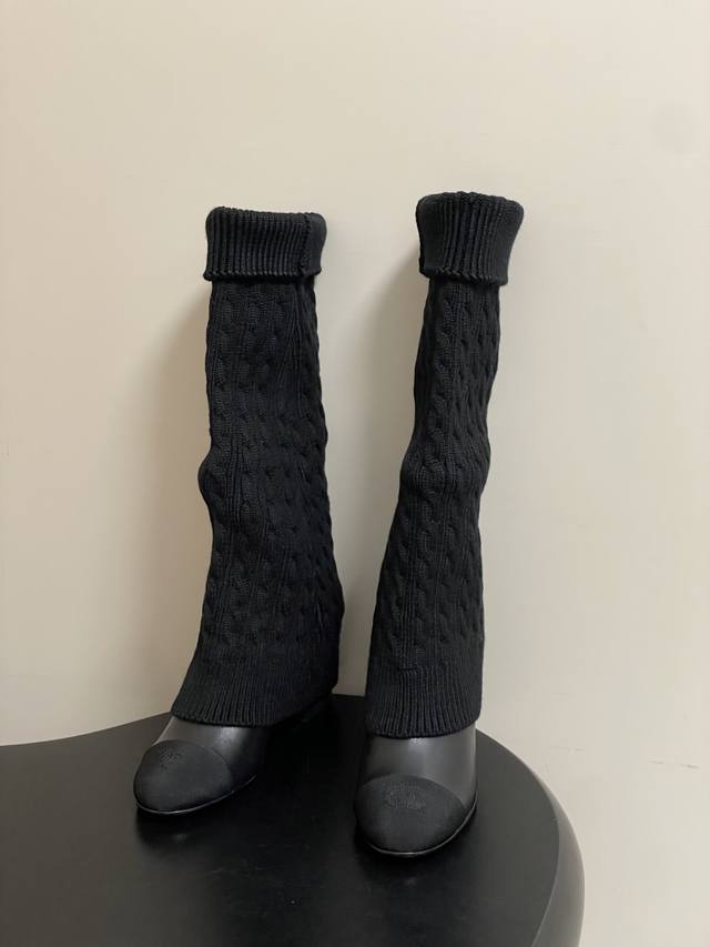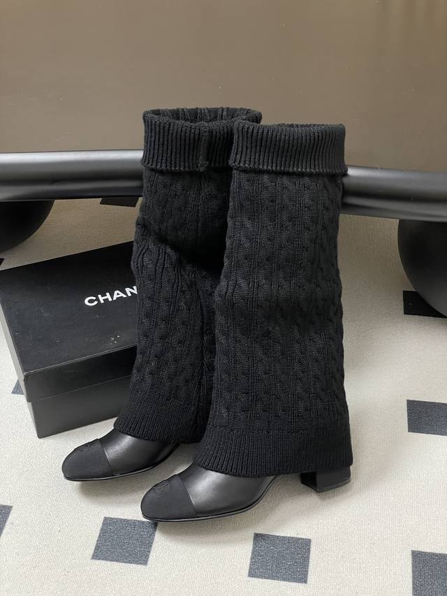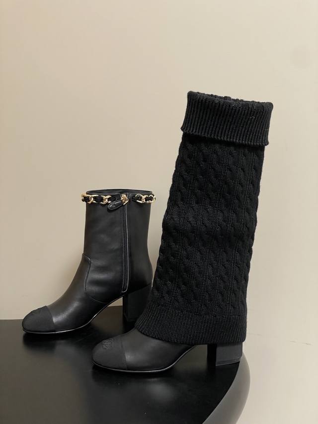 New Autumn/Winter Chanel 25B Autumn/Winter Runway Chain Ankle Boots, High-Heeled Sock Boots, Trouser Leg Boots, Two-Way Boots DDD When the softness of knitwear meets the coolness of chains, these trouser leg boots break boundaries with their dual-wearing options. They fuse French elegance with multifaceted style, redefining the possibilities of autumn/winter boots. The carefully selected delicate knit fabric naturally conforms to the leg, offering both the light, wrapping feel of sock boots and the structured silhouette of trouser leg boots. Walking feels like walking on a second skin, yet possesses a sophisticated, haute couture feel. DDD The iconic chain design takes classic style to a whole new level! A rugged yet refined metal chain encircles the boot shaft, achieving a delicate balance between strength and softness, creating a striking and fashionable statement. The chain sways gently with each step, producing a pleasant sound, exuding effortless chic. The cleverly designed mid-heel ensures comfort, whether paired with simple wide-leg trousers. Whether you're aiming for a casual and sophisticated professional look, pairing them with skirts and shorts for a youthful and playful vibe, or opting for slim-fit jeans for a relaxed yet stylish urban style, every step is aesthetically pleasing