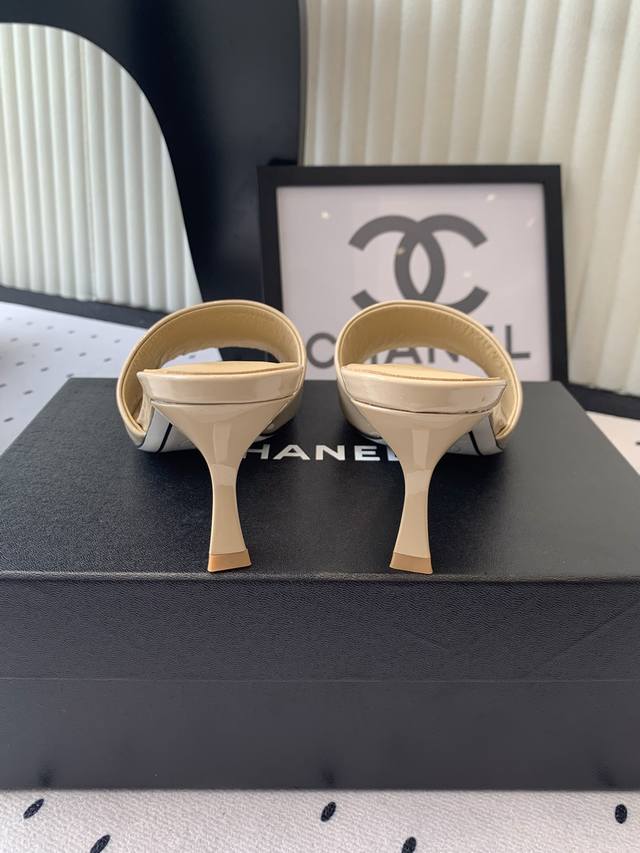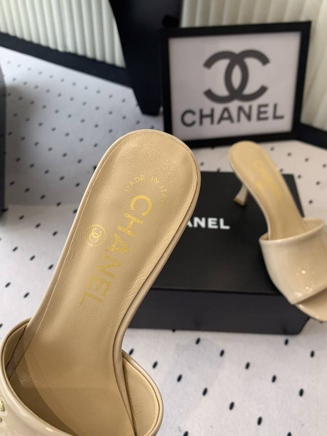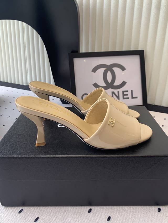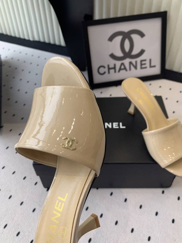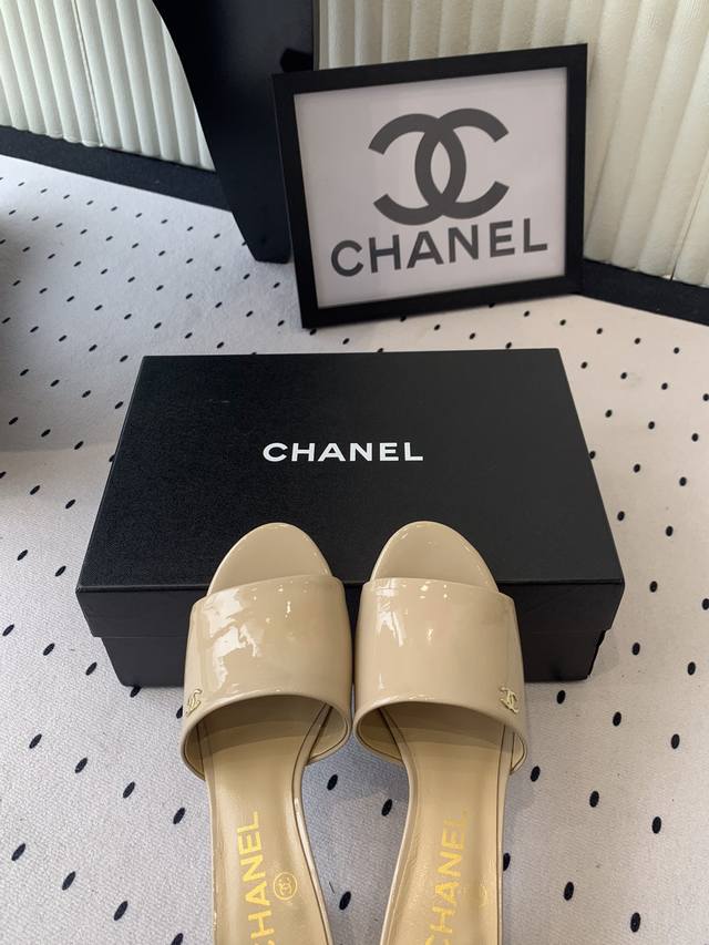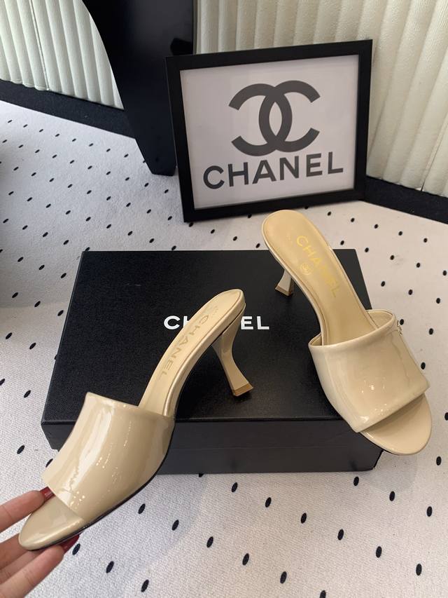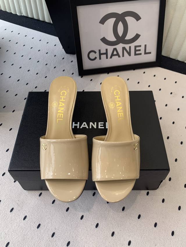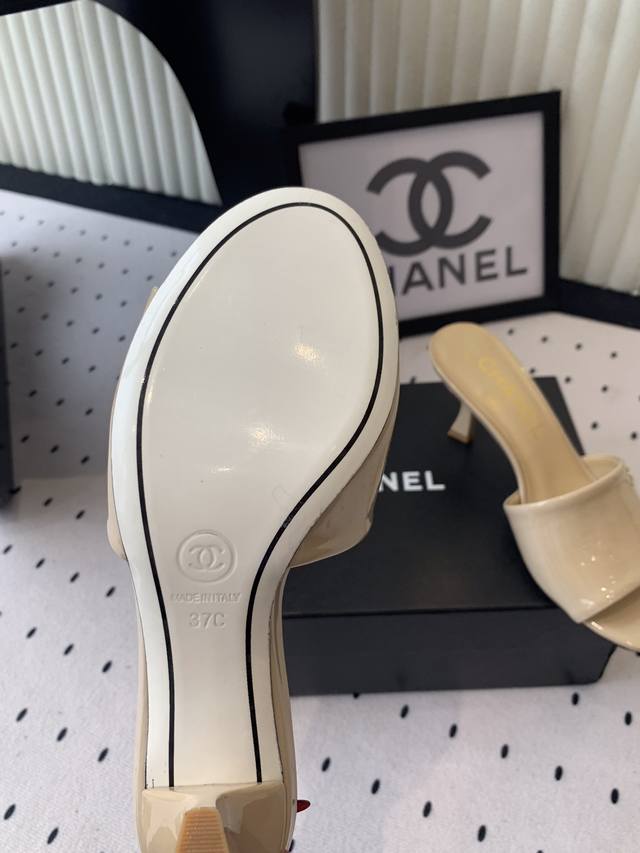 New Chanel high-heeled sandals, classic and versatile casual design, elegant and professional, comfortable to wear, flattering to the legs. Imported cow patent leather upper, sheepskin insole, Italian genuine leather outsole. Sizes: 35-39, 40, 41, 42. Custom made.