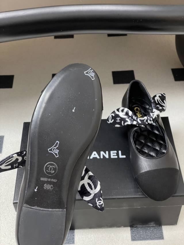 New Spring/Summer Chanel 26C Scarf Series Color Block Bow Double C Ribbon Mary Jane Ballet Flats Super Hot Bunny Ear Shoes DDD A super sexy pair of flat shoes from Chanel. They look great worn alone or with socks. DDD The most beautiful Mary Jane shoes of the year, paired with a playful bow, perfectly capturing cuteness and playfulness, giving off a rich heiress vibe. DDD The black and white round toe with cute little ears is so adorable! DDD Upper: Lambskin DDD Insole: Lambskin DDD Sole: Italian genuine leather outsole DDD Sizes: 35-39 40.41 Made to order, no returns or exchanges DDD