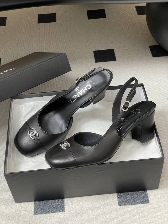 New Spring/Summer Chanel Slingback 26C with Double C and Rhinestone Buckle, Classic Color-Blocked Shoes, Square Toe High Heel Sandals DDD I love wearing Chanel Slingbacks, and I finally found one I like! DDD Stunning on! The classic round toe design, elegant double C buckle combined with metal accents, complements each other perfectly. Very versatile and comfortable to wear. Full of luxury! DDD Upper: Lambskin DDD Insole: Lambskin DDD Outsole: Italian Grade A Genuine Leather DDD Heel Height: 6cm DDD Sizes: 35-39 Sizes 40 and 41 are custom-made and non-refundable DDD