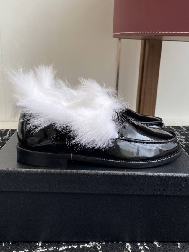 Official website packaging, top-quality. Chanel 25Ss new mink fur loafers, a must-have for autumn and winter. A goddess series, possessing Chanel's signature elegant and sophisticated style, incredibly stylish and irresistible. Upper: Imported suede, imported butter leather, original mold, hardware and logo. Lining: Imported mink fur. Outsole: Italian genuine leather. Size: #35-41 (40, 41). Custom orders are non-refundable and non-exchangeable.