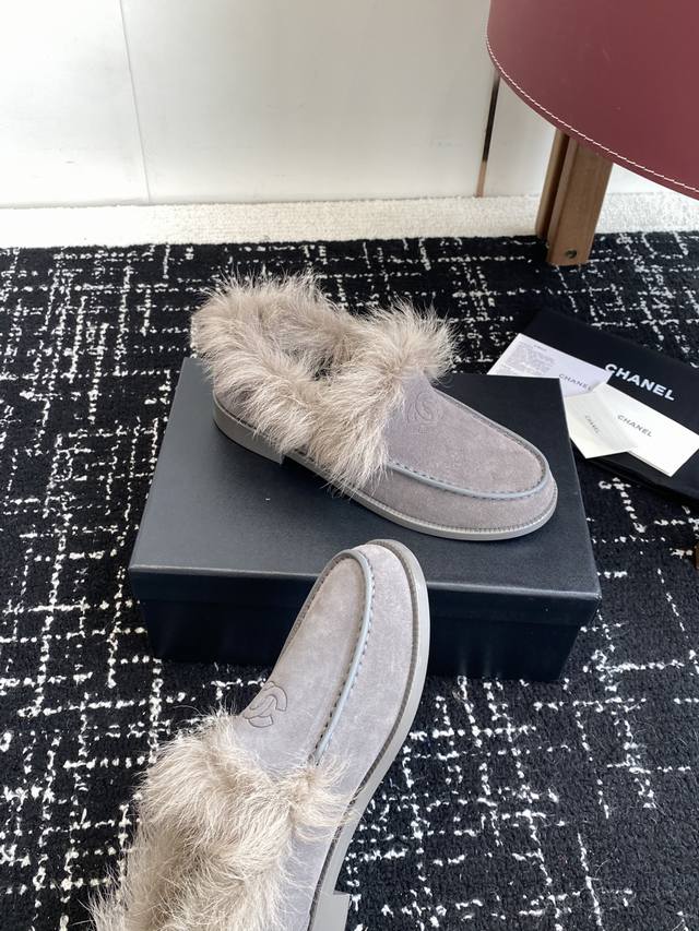 Official website packaging, top-quality. Chanel 25Ss new mink fur loafers, a must-have for autumn and winter. A goddess series, possessing Chanel's signature elegant and sophisticated style, incredibly stylish and irresistible. Upper: Imported suede, imported butter leather, original mold, hardware and logo. Lining: Imported mink fur. Outsole: Italian genuine leather. Size: #35-41 (40, 41). Custom orders are non-refundable and non-exchangeable.