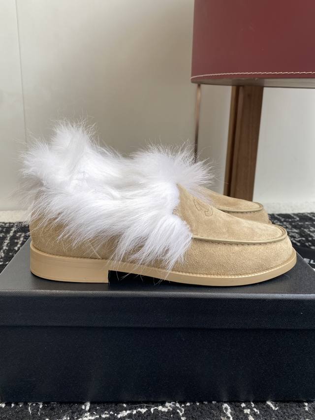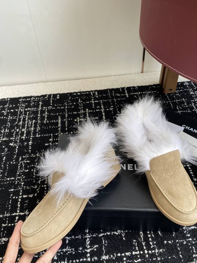 Official website synchronized box packaging. Chanel 25Ss new mink fur loafers, a must-have for autumn and winter. A goddess series, possessing Chanel's signature elegant and sophisticated style, super stylish and irresistible. Upper: Imported suede, imported butter leather, original mold, hardware and logo. Lining: Imported mink fur. Outsole: Italian genuine leather. Size: #35-41 (40, 41). Custom orders are non-refundable and non-exchangeable.