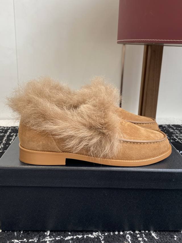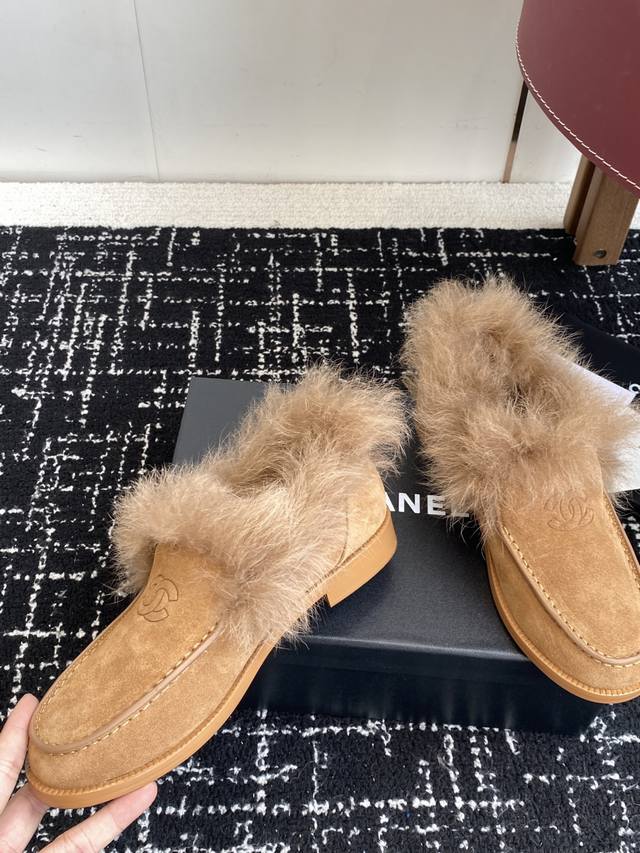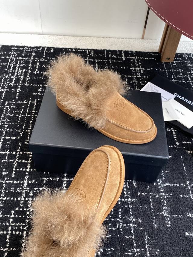 Official website synchronized box packaging. Chanel 25Ss new mink fur loafers, a must-have for autumn and winter. A goddess series, possessing Chanel's signature elegant and sophisticated style, super stylish and irresistible. Upper: Imported suede, imported butter leather, original mold, hardware and logo. Lining: Imported mink fur. Outsole: Italian genuine leather. Size: #35-41 (40, 41). Custom orders are non-refundable and non-exchangeable.