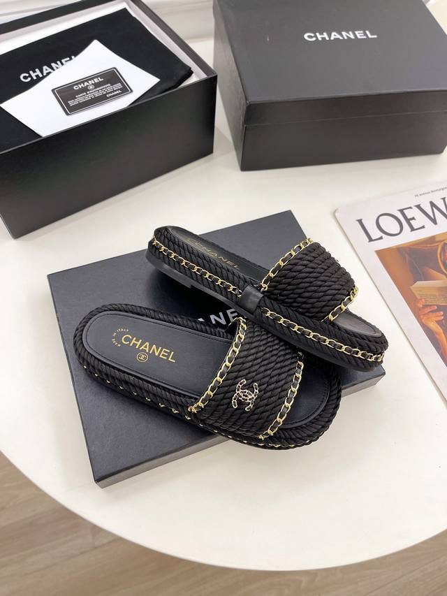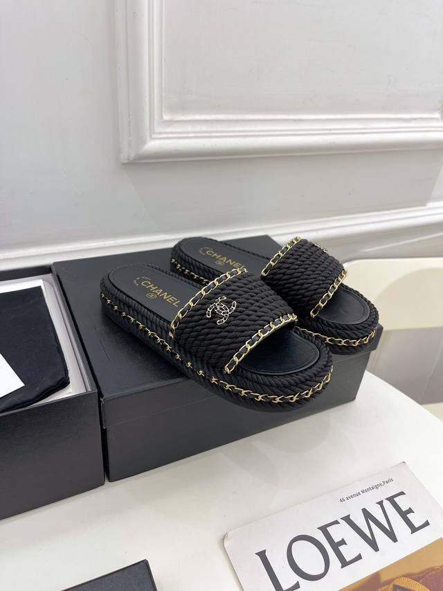 Chanel Spring/Summer New Arrival Chain-Woven Thick-Soled Slippers Casual Resort Sandals