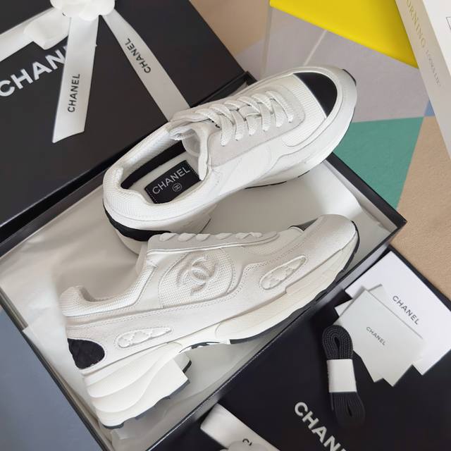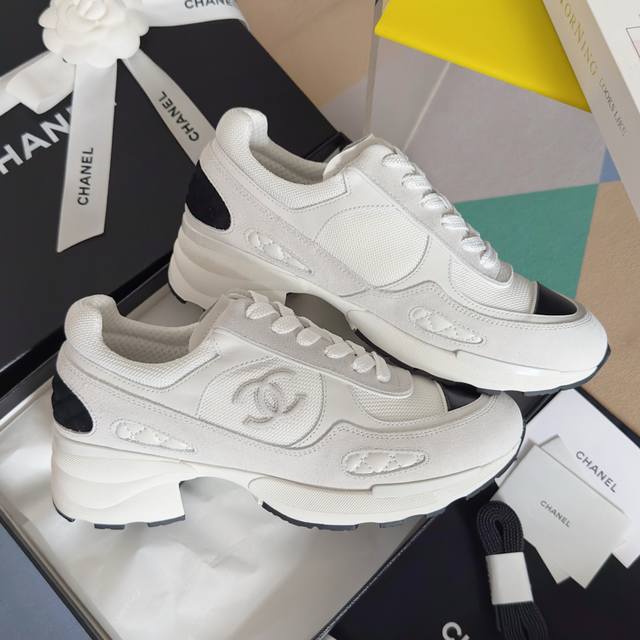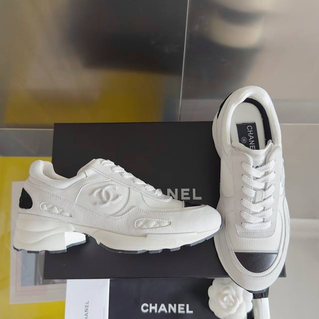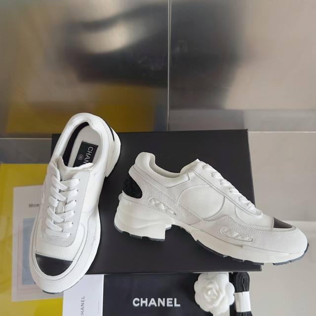 Retail Item: Women's Chanel 25K Black and White Panda Chunky Heel Sneakers. Original purchase, developed and manufactured. Another super popular style from Chanel boutiques, a favorite of online influencers and fashionistas, receiving countless praises on social media. Highly popular, breathable, and perfect for spring and summer. Seeing this style will always awaken a girl's desire for fashion. Latest suede material, classic black and white color scheme, incredibly stylish and easy to care for. Comes with exquisite boutique packaging. Material: Original custom imported top-grain cowhide. Lining: Custom imported breathable mesh. Sole: Original molded anti-slip rubber material. Heel height: 4cm. Size: Women's 34-39, customizable to 40.