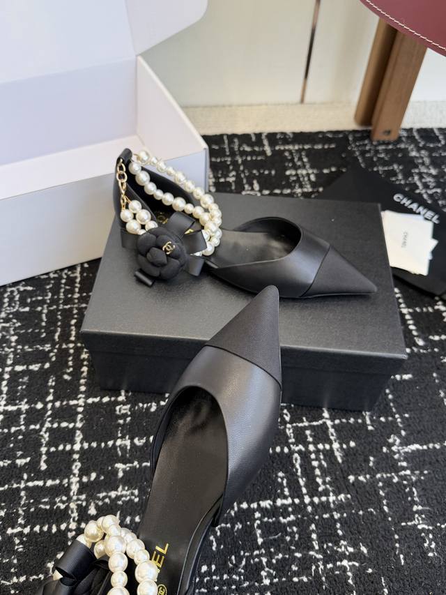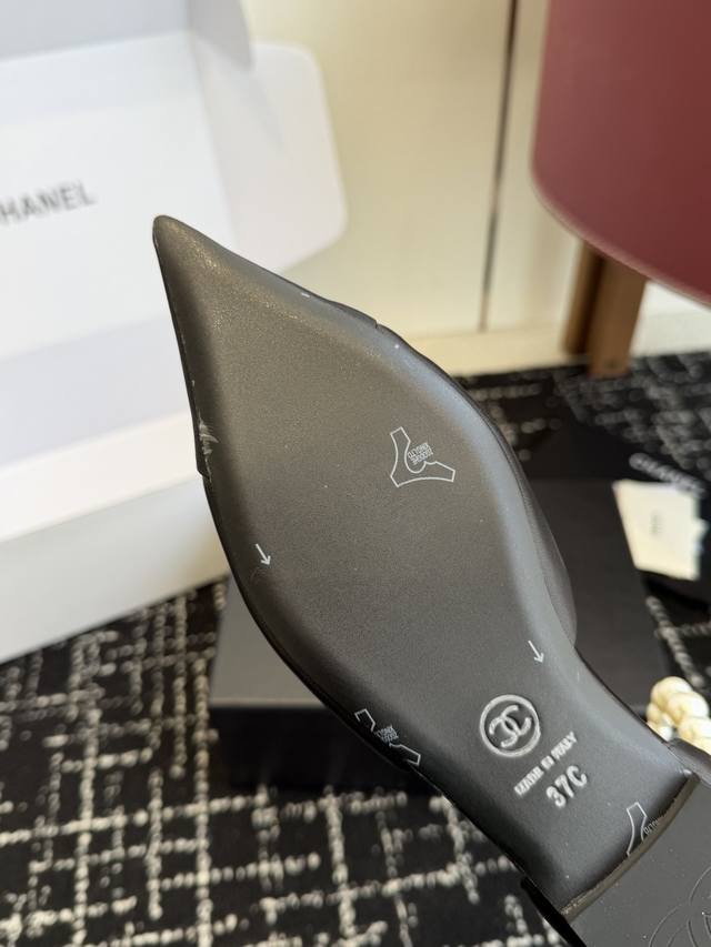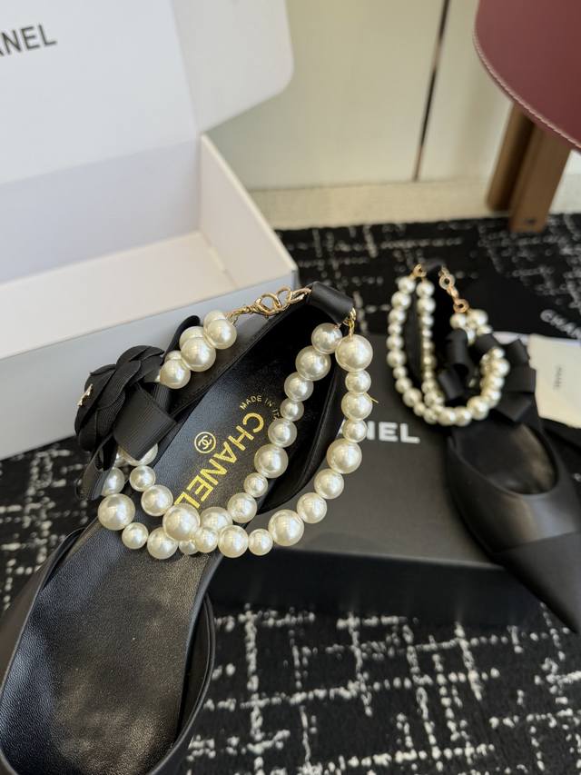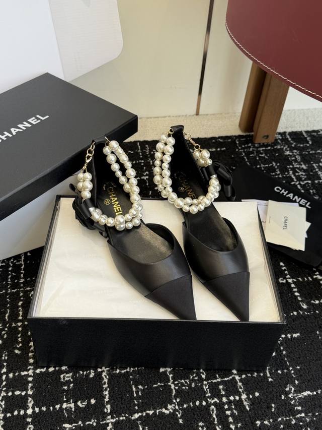 Retail-grade, official website synchronized box packaging Chanel Spring/Summer 2026 latest pearl-print pointed-toe sandals. Pearls are truly the soul of Chanel! These classic color-blocked shoes are absolutely stunning! They evoke images of a pampered and elegant rich girl from that era. The pearl chain adorned with the brand's double-C metal logo is unique and very ladylike. They look amazing with any outfit. The upper is made of imported lambskin, the lining is made of imported mixed lambskin, and the outsole is made of Italian genuine leather. Sizes: 35-41, 40-41 are custom-made and non-refundable.