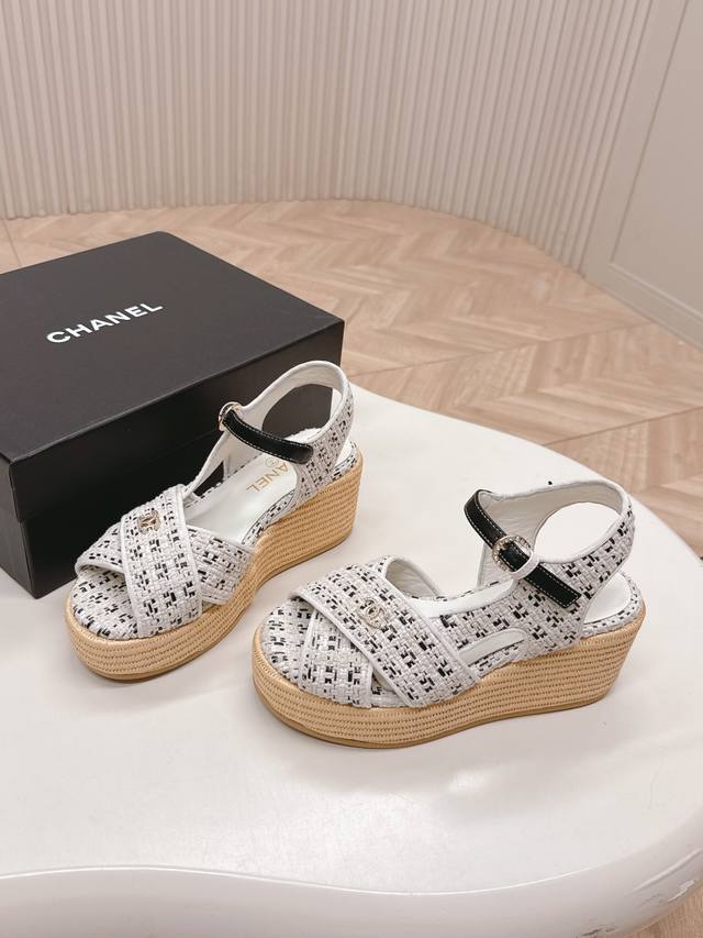 Selling Chanel 2025 New Sandals and Slippers Collection. Classic style, every design is amazing. Diamond-patterned platform sandals and slippers, elegant, sophisticated, comfortable, and versatile. Upper: Lambskin, woven fabric. Insole: Lambskin. Sole: Rubber outsole. Sizes: 35-40.