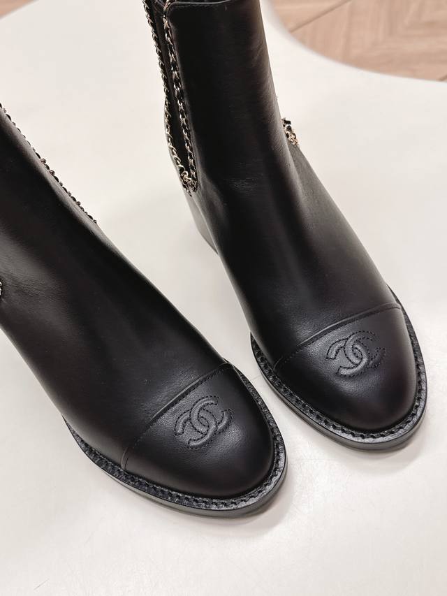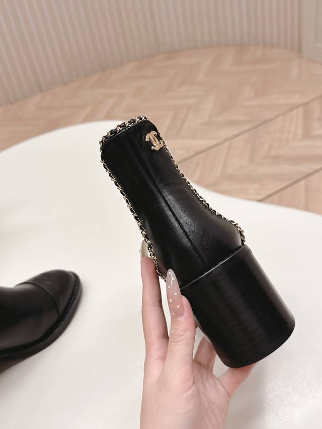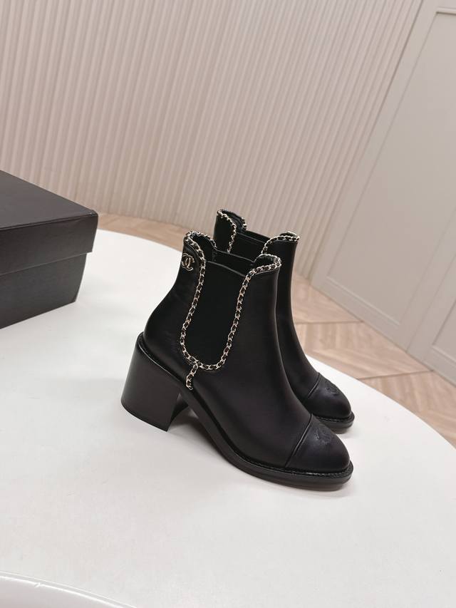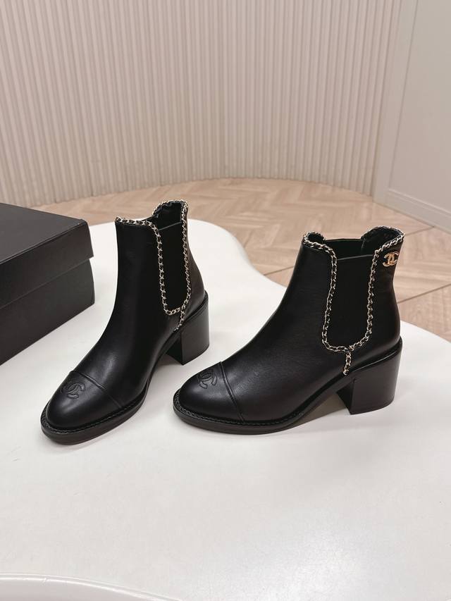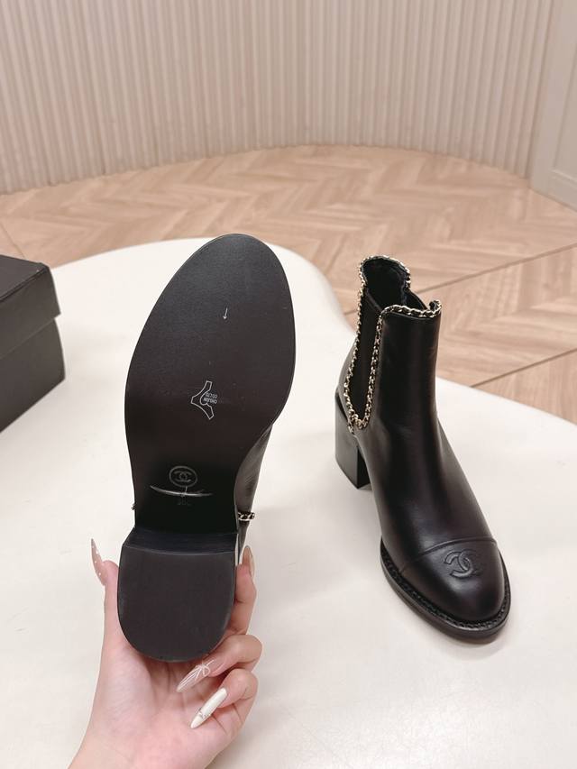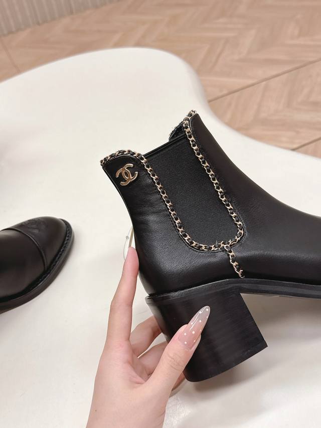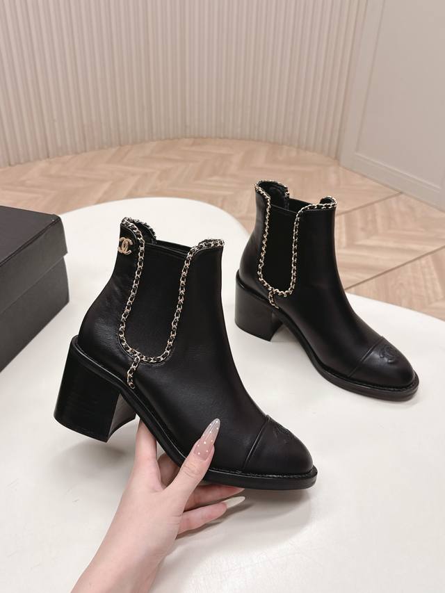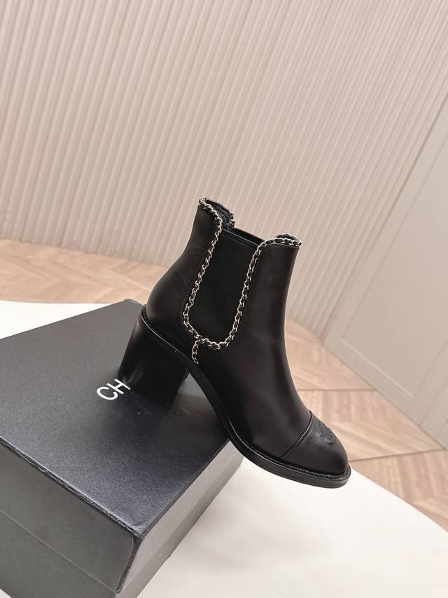 Selling Chanel 25Ss New Autumn/Winter High-Heeled Martin Boots, Ankle Boots, Versatile and Slim Fit. Three-dimensional and full shape, comfortable and stylish, elasticated slip-on for easy wear, classic chain hardware for a high-end and elegant look. Upper: Cowhide leather. Lining: Cowhide leather. Insole. Size: 35-39. Size 40 is custom-made and non-refundable.