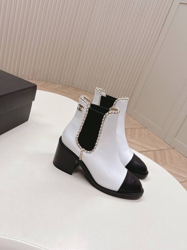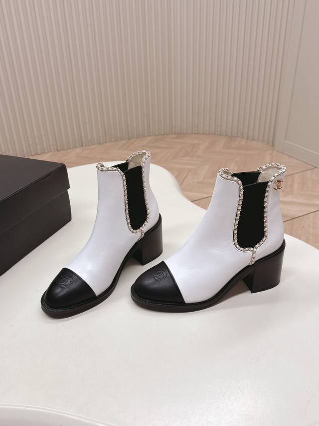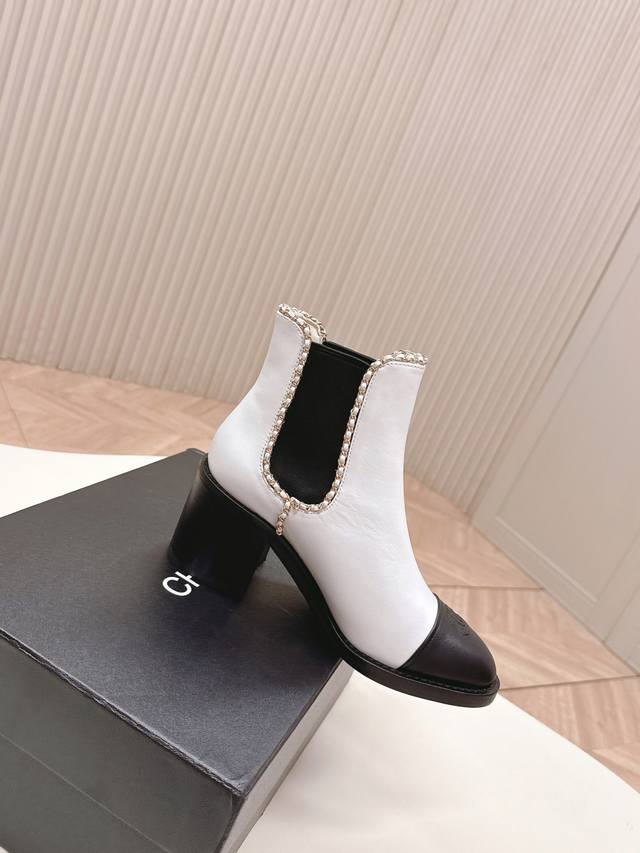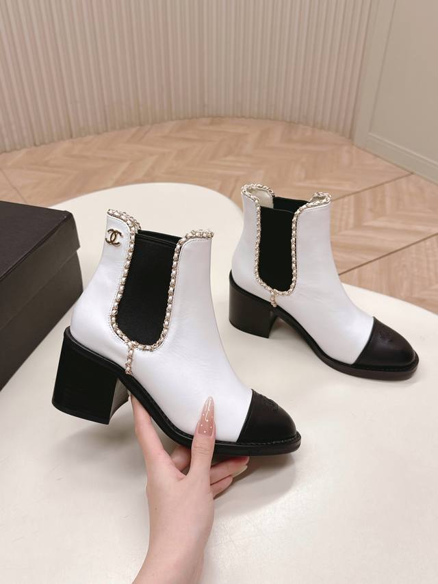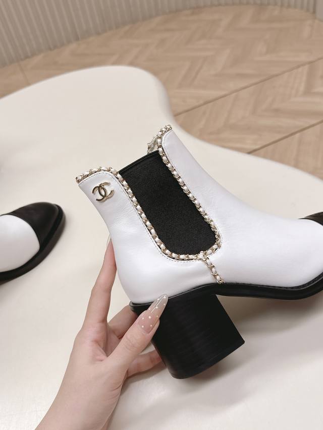Selling Chanel 25Ss new autumn/winter high-heeled Martin boots, short boots. Versatile last for slim feet. Three-dimensional and full shape, comfortable and stylish. Elasticated slip-on design for easy wear. Classic chain hardware for a sophisticated and elegant look. Upper: cowhide. Lining: cowhide. Insole. Size: 35-39 40
