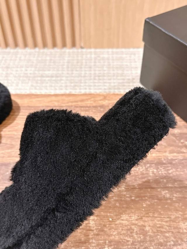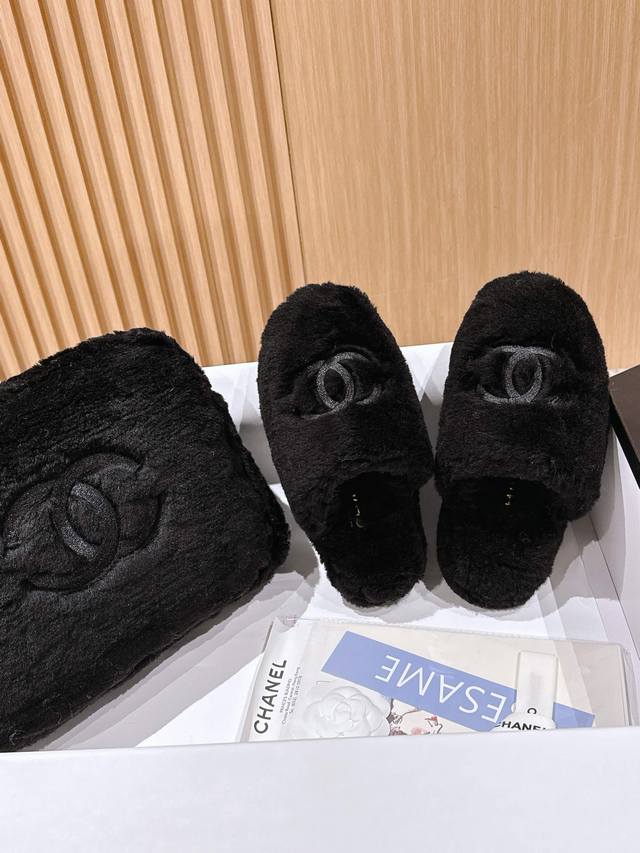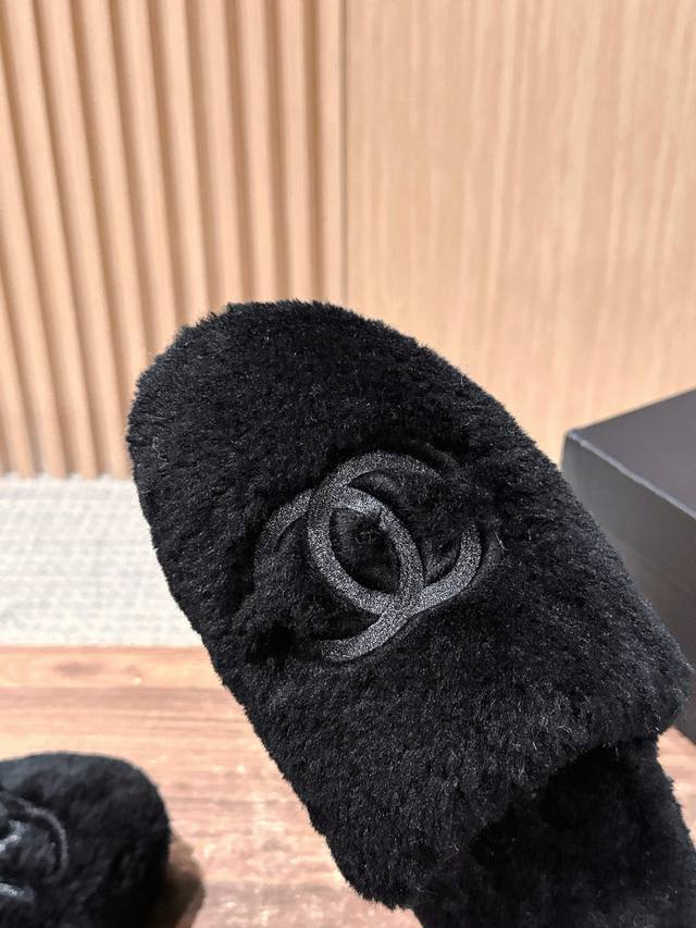 . Shoes alone: 310; storage bag: 480. #Chanel new style platform slippers, suitable for home and hotel. A must-wear for winter. Warm and comfortable. Shearling material, sole approximately 4cm. Size: 35-39. Size 40 is custom-made and non-refundable.