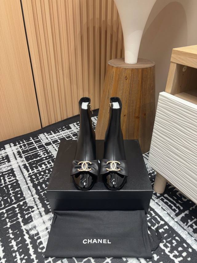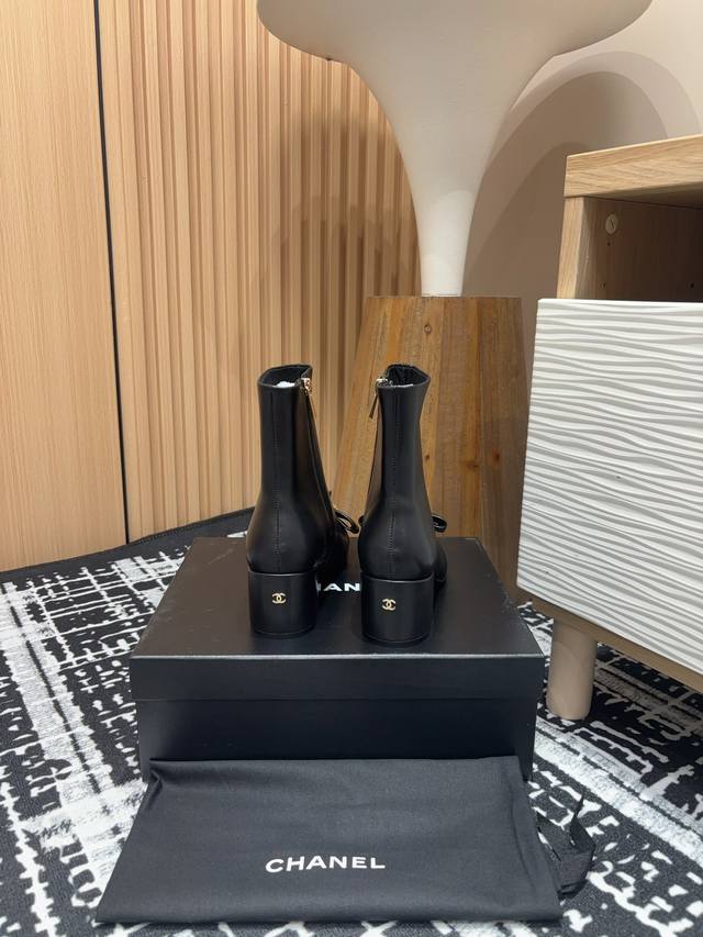 245Fw New Chanel Mini Bow Double C Rhinestone Buckle Ankle Boots