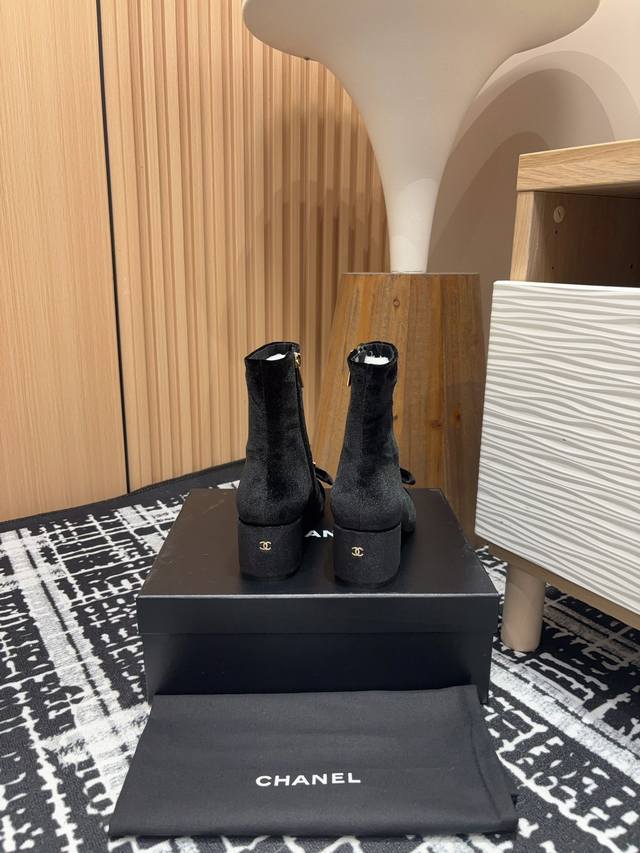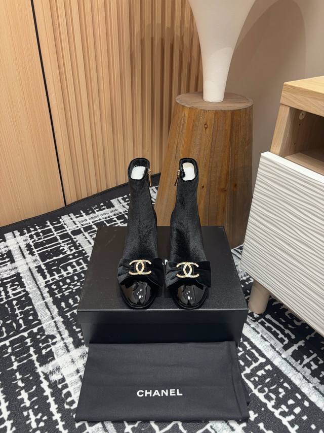 25Fw New Chanel Mini Bow Double C Rhinestone Buckle Ankle Boots