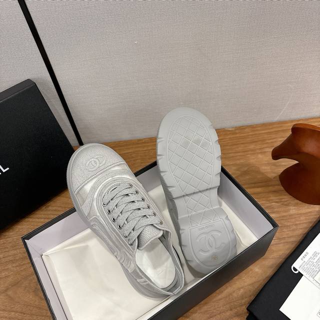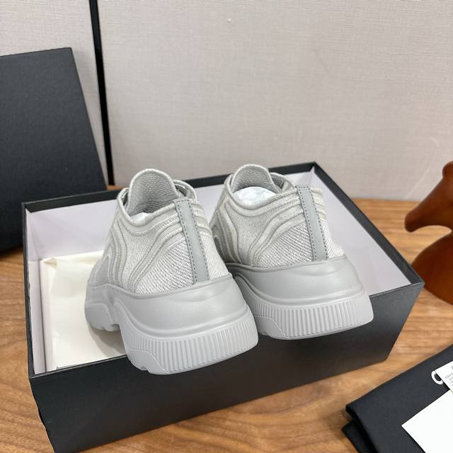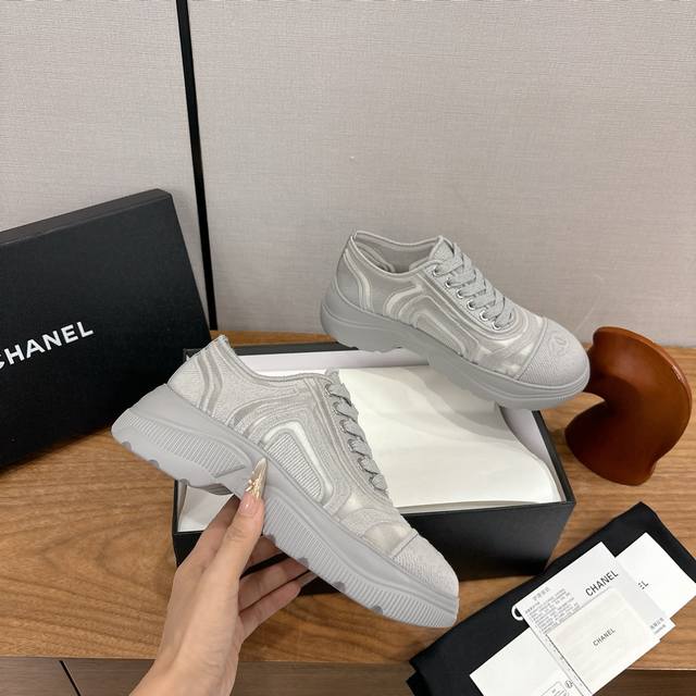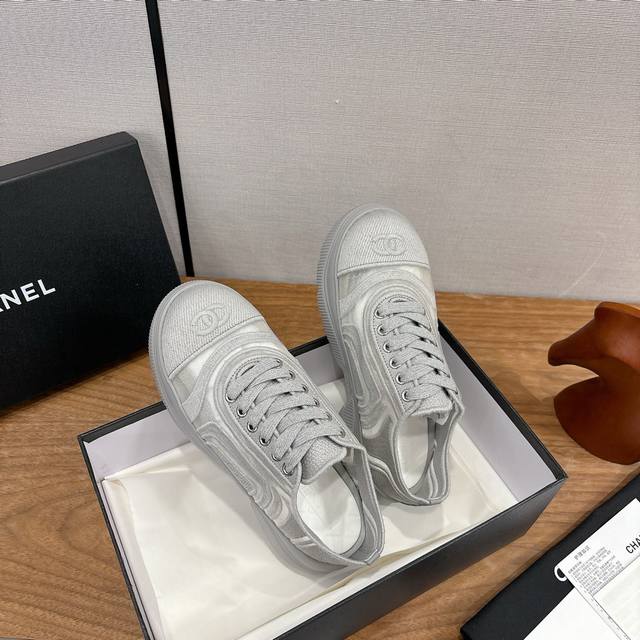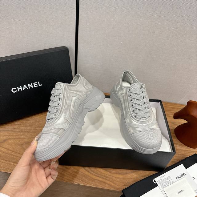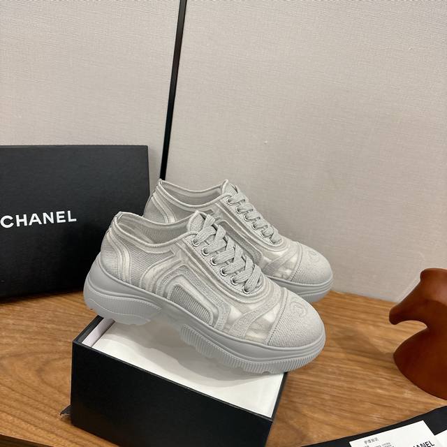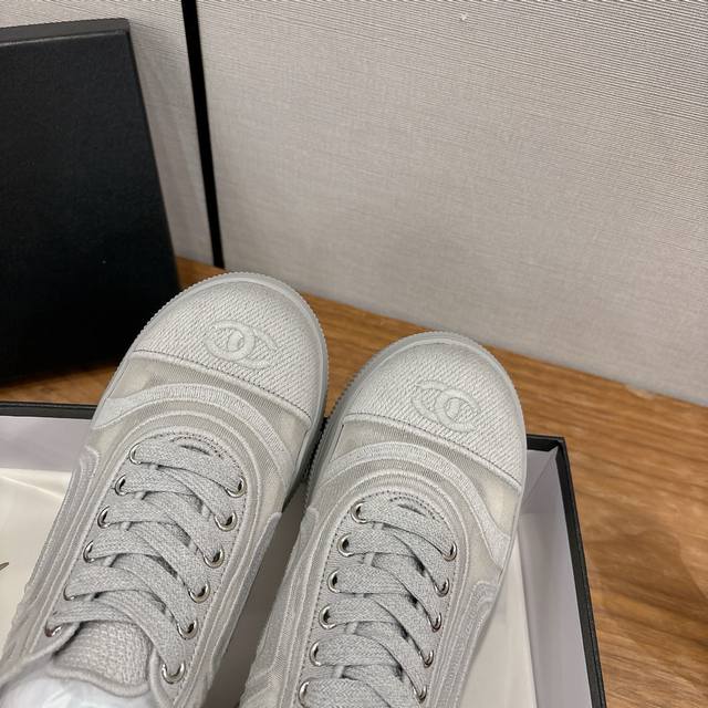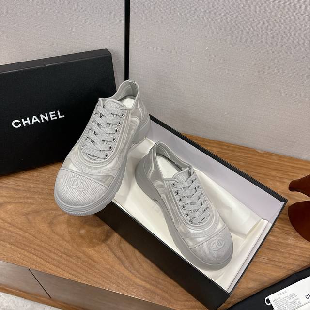 This Chanel striped sneaker features a combination of fabric and synthetic leather with a streamlined toe and the iconic double C logo. Perfect for everyday wear and effortlessly suitable for any occasion. Sizes: 35-39. Custom orders of 40 and 41 are non-refundable.