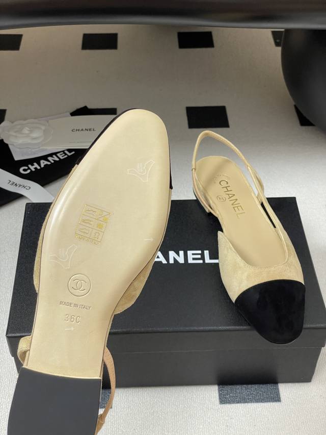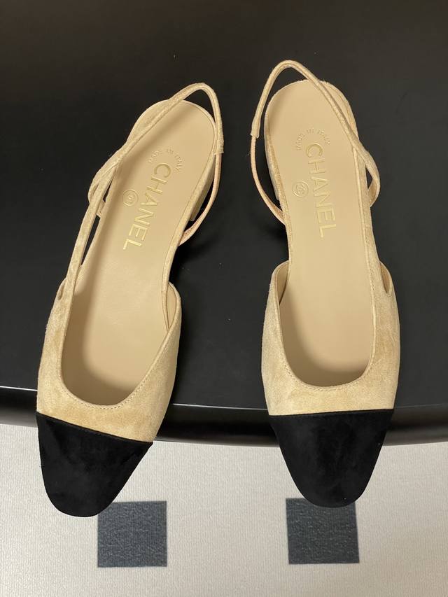 25S Early Spring New Chanel Exquisite Suede Sling-Back Sandals Flat Chunky Heel