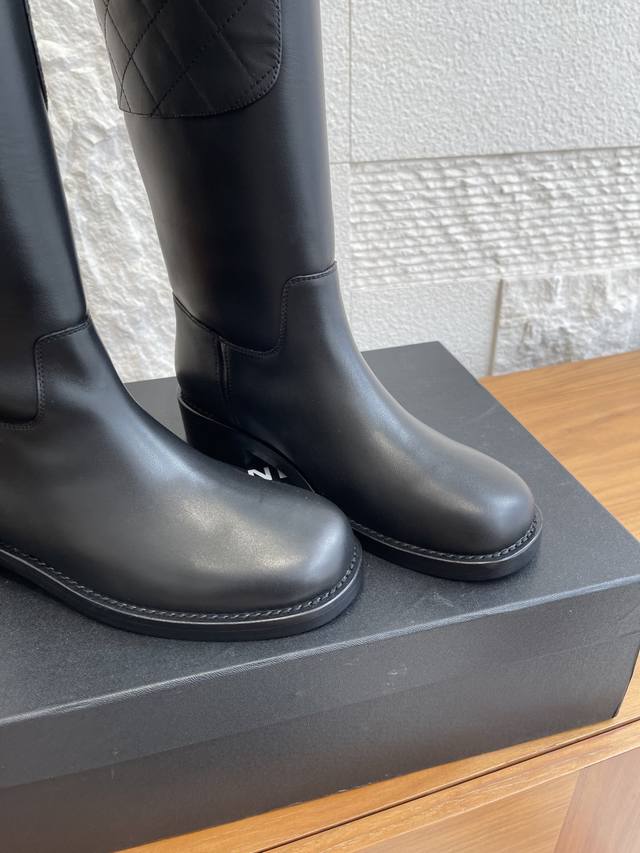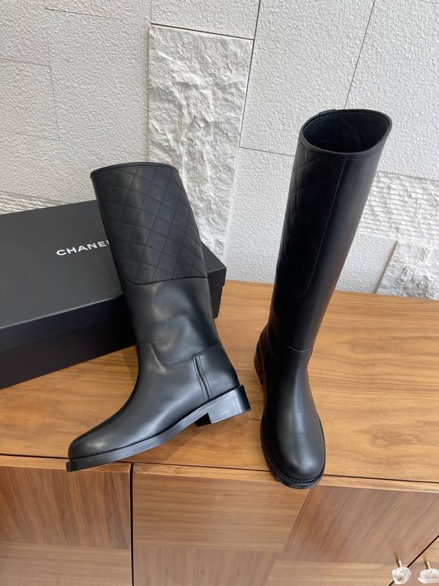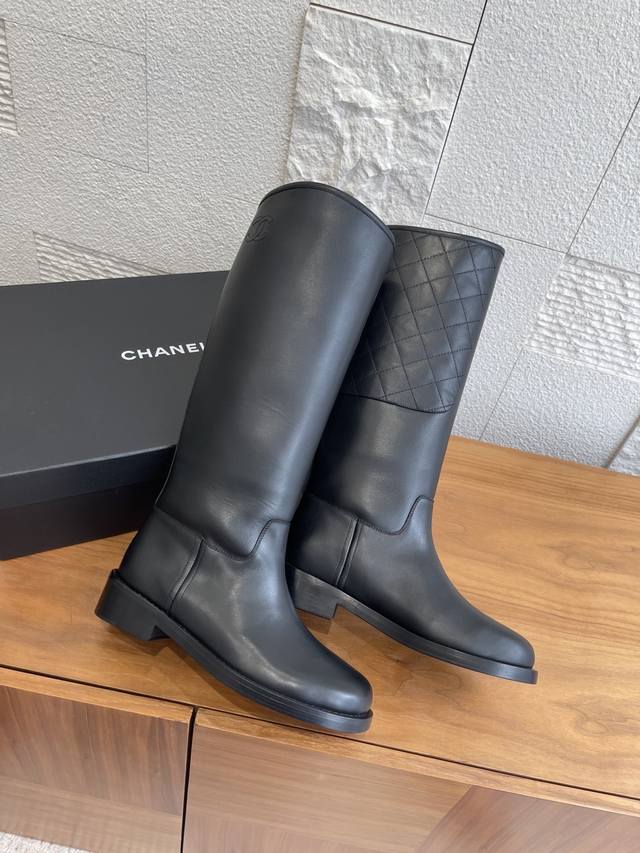 Top Version: DDD Chanel 2025 Autumn/Winter New Retro Western Cowboy Boots DDD Chanel riding boots, black calfskin with diamond-quilted stitching, exquisite texture and durable! The slanted boot shaft design flatters the legs and makes them look slimmer. The flat sole is comfortable, suitable for daily commutes or long hours of wear. Simple and elegant, they pair well with trench coats and overcoats, a must-have for autumn and winter! Classic and versatile, fashionistas are all wearing them, practical and stylish, you can't go wrong with any outfit~ DDD Material: Imported calfskin DDD Lining: Imported cowhide DDD Outsole: Italian imported genuine leather DDD Size: 35-41 40 41 Made to order, no returns or exchanges DDD