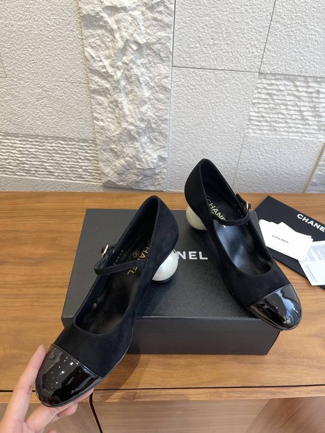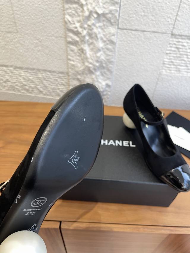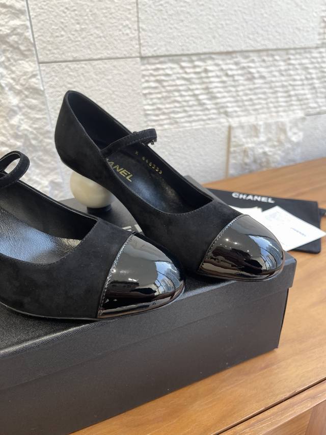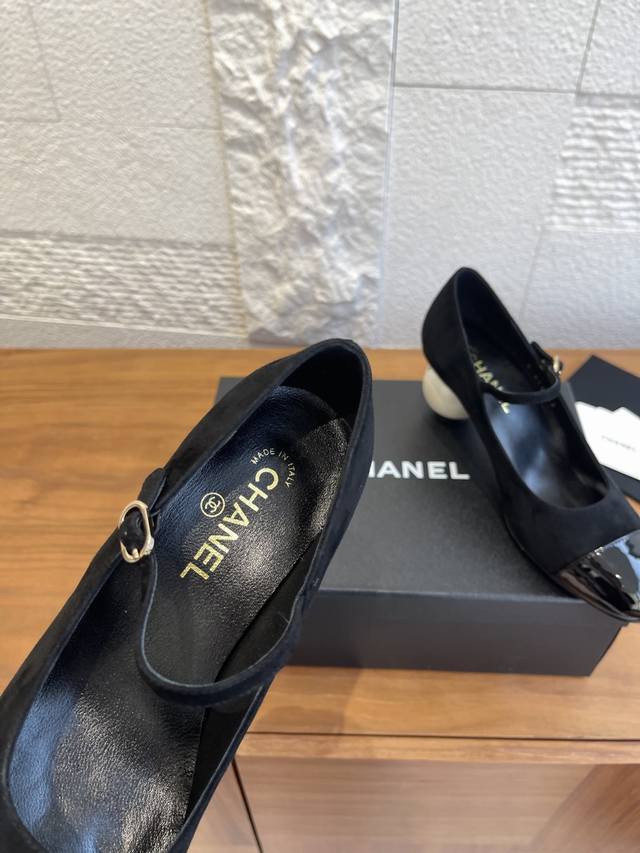 Chanel pearl heel Mary Jane shoes, classic color-block design, elegant and retro style. Metal buckle strap + pearl heel, exquisite details, soft lambskin lining, Italian genuine leather outsole, comfortable and durable. Easily suitable for daily commutes or formal occasions, full of French retro feel, can be paired with skirts or trousers, practical and fashionable, one of Chanel's classic styles!