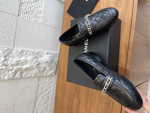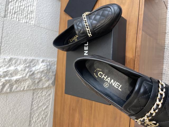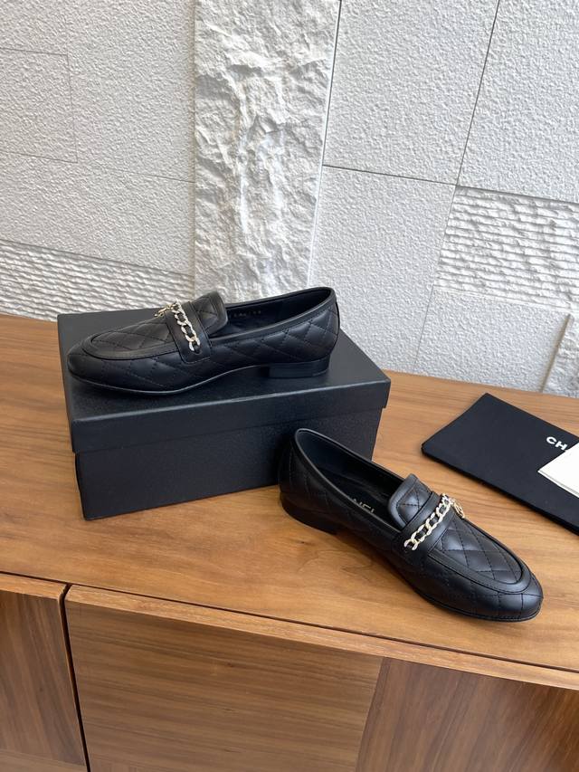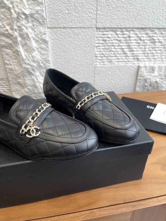 Chanel 25Ss Early Autumn New Style Double C Rhinestone Chain Embroidered Quilted Loafers