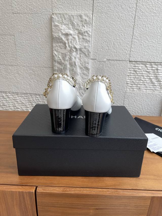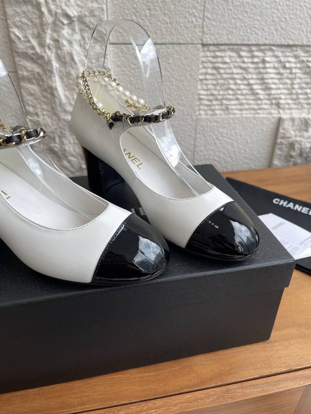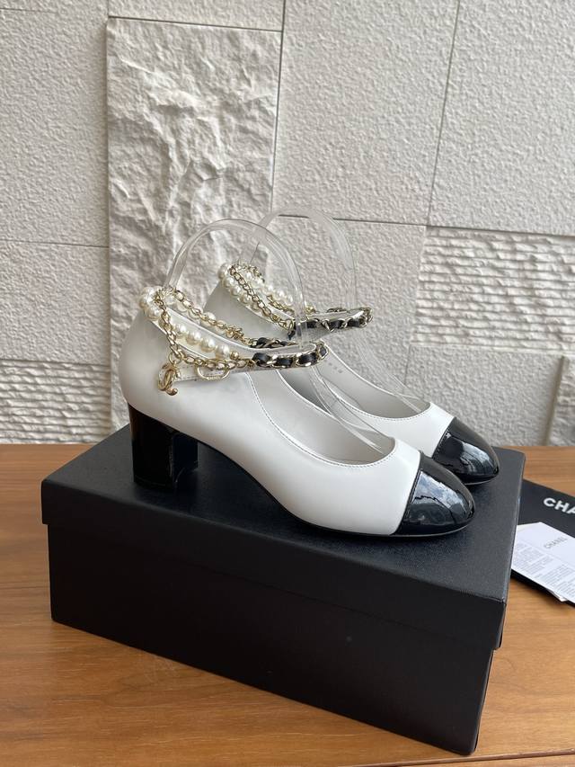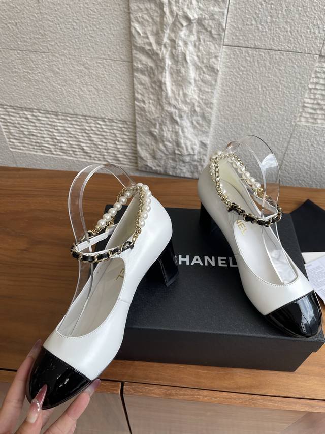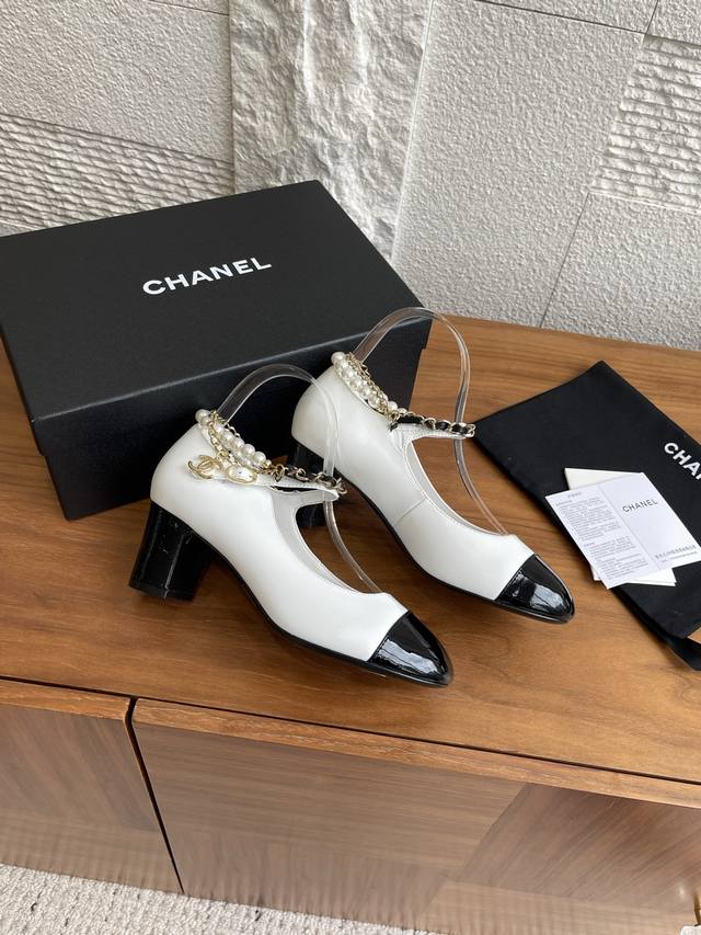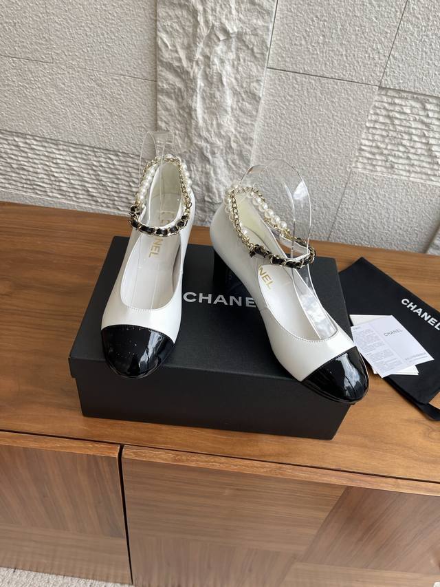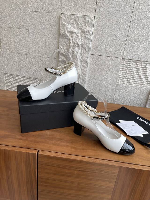 Chanel 25Ss Spring/Summer New Pearl Chain Buckle Double C Mary Jane Shoes