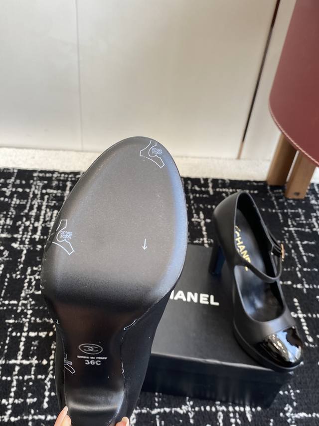 Top-quality Chanel 25Ss latest runway platform high heels, top-tier quality. Luxurious yet comfortable, easily paired with spring and summer outfits, enhancing your style and taste. A simple yet luxurious design, even as a sandal, it's an absolute must-have for your summer shoe collection. Upper: Imported sheepskin, imported patent leather. Lining: Imported sheepskin lining. Outsole: Italian genuine leather. Heel height: 11.5cm. Platform: 1.5cm. Size: #35-40, 40, 41, 42. Custom orders are non-refundable and non-exchangeable.