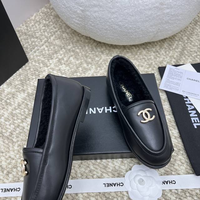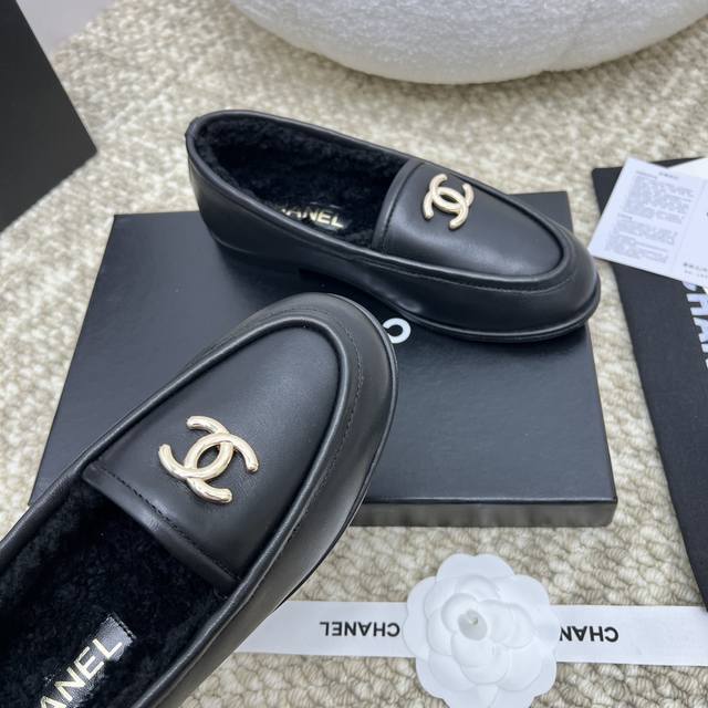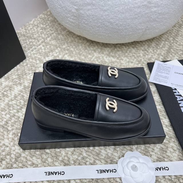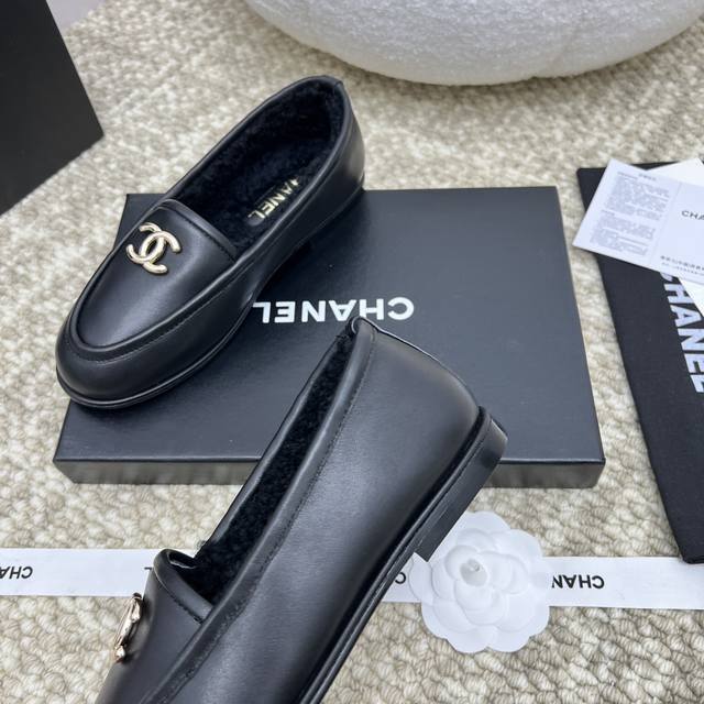 Top-tier factory version with airplane box. Chanel 24 Teddy Loafers with Lambswool. Another super hot-selling item from Chanel boutiques, a favorite of online influencers and fashionistas, receiving countless praises on social media. Highly popular, breathable, and perfect for spring and summer. This style always evokes a girl's desire for fashion. Latest suede material, classic black and white color scheme, incredibly stylish and easy to care for. Material: Original custom imported top-grain cowhide. Lining: Custom warm lambswool. Sole: Original molded genuine leather outsole. Sole thickness: 1.5cm. Size: #35-41. Sizes 40 and 41 are custom-made and non-refundable.