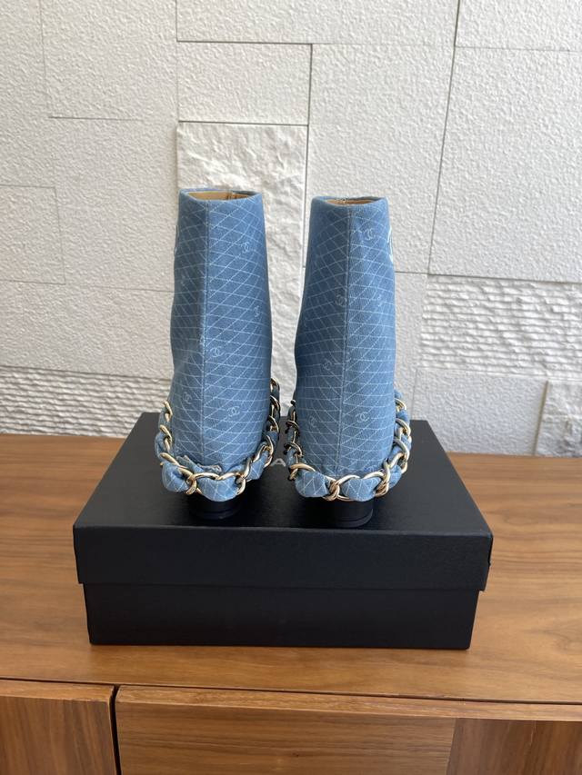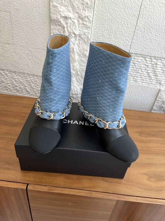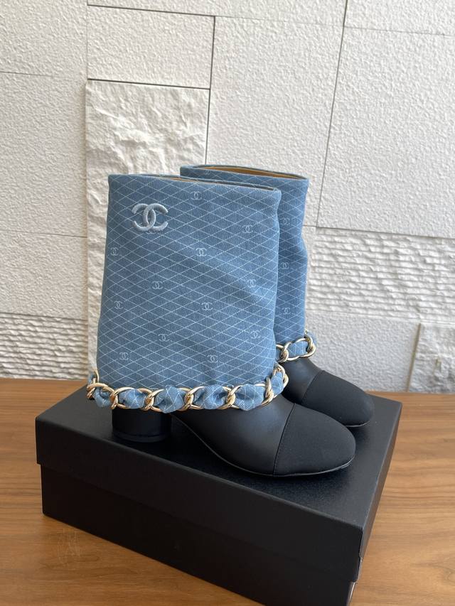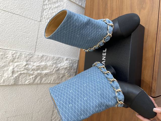 Chanel 25Ss Fall/Winter New Arrival Diamond Quilted Fabric Chain Chunky Heel Trouser Leg Boots by