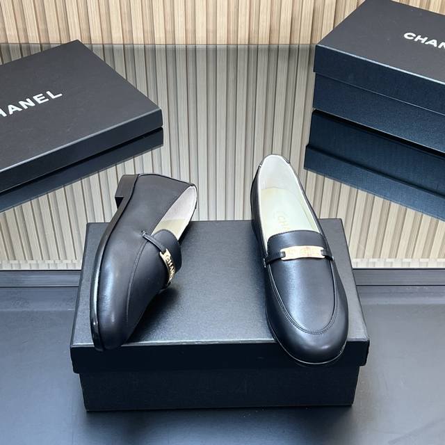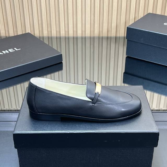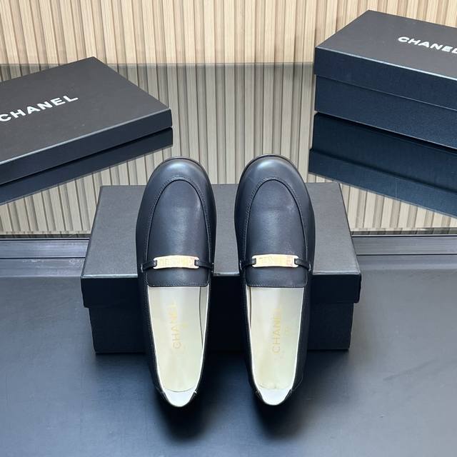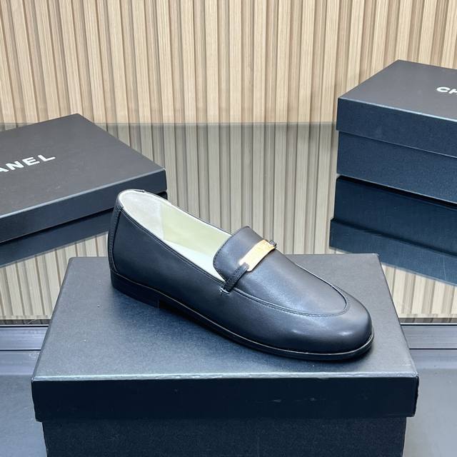 Top-tier version Chanel 2025 early autumn new style loafers, genuine leather shoes. Look for our detailed real photos of the top-tier version, 1:1 original. The buckles and stitching are all made according to the original. Same style as the official website, using original calfskin; exclusive 1:1 custom metal logo. A super hot seller on major boutiques and platforms! Absolutely selling out! Very soft and comfortable to wear, highly recommended. Material: Imported original calfskin. Outsole: Italian genuine leather. Sizes: 35-39, 40, 41 (custom sizes). Comes with authentic Italian packaging!