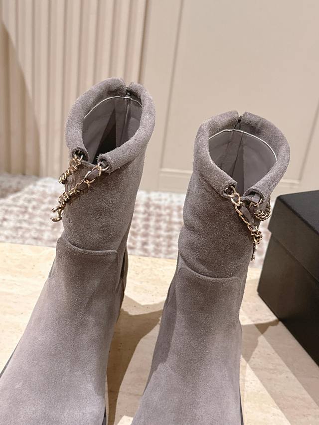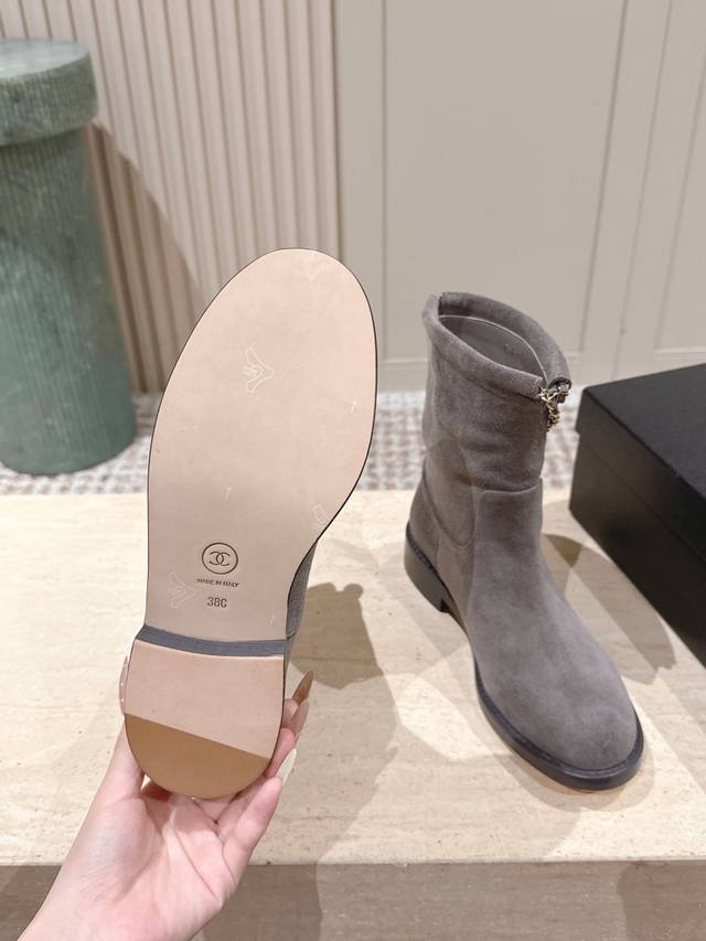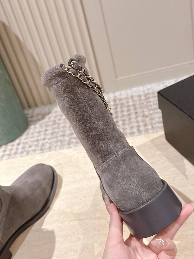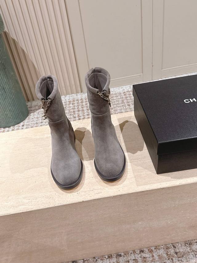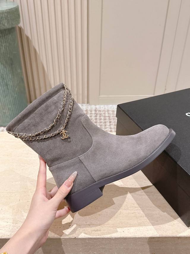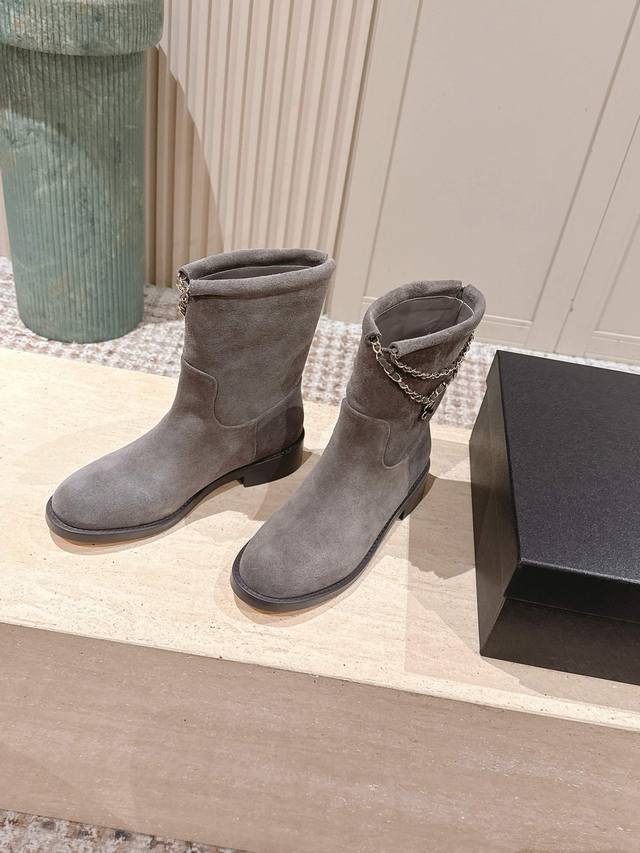 Top-tier version: DDD Chanel 2025 Fall/Winter New Punk Style Chain Women's Ankle Boots, Chanel Logo Hardware Buckle Round Toe Low Heel Motorcycle Boots DDD Material: Imported calfskin upper, imported suede + water-dyed cowhide lining + Italian genuine leather outsole DDD Heel height: 3cm DDD Size: 35-41 40.41 Made to order, no returns or exchanges DDD
