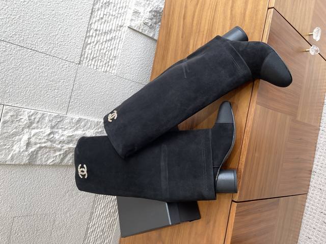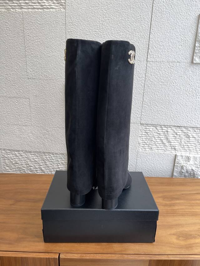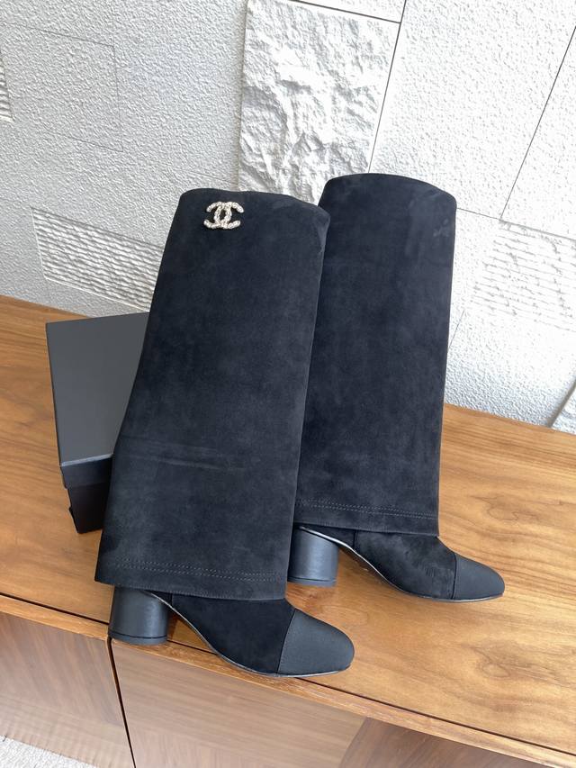 Chanel 25Ss Fall/Winter New Double C Rhinestone Buckle High-Heeled Trouser Boots