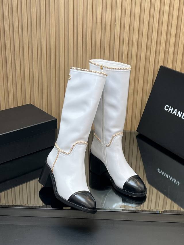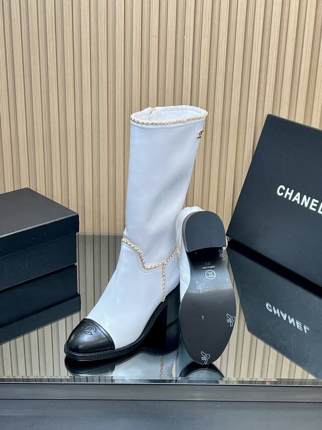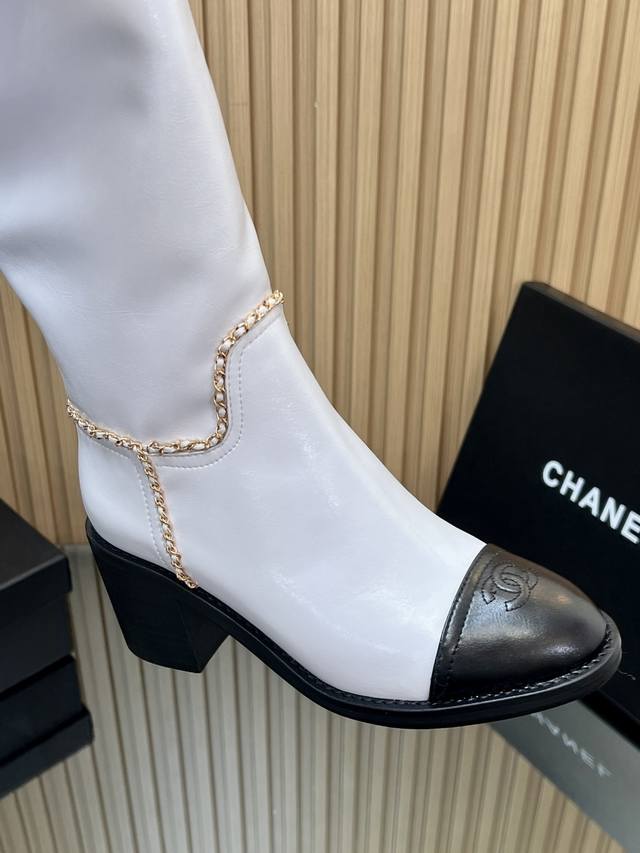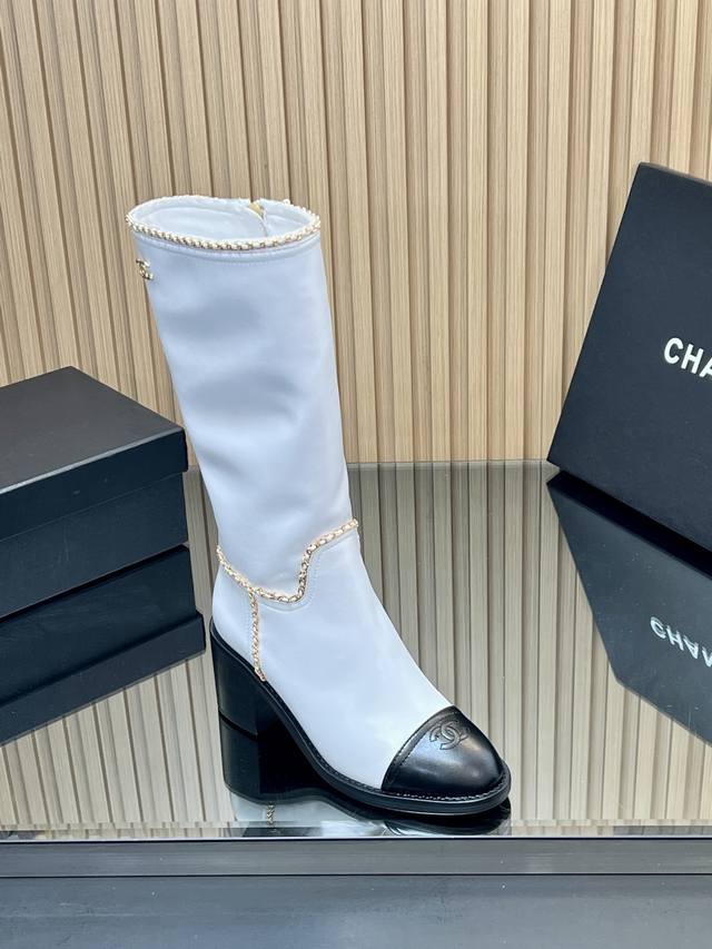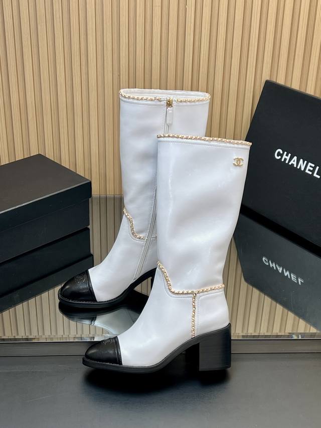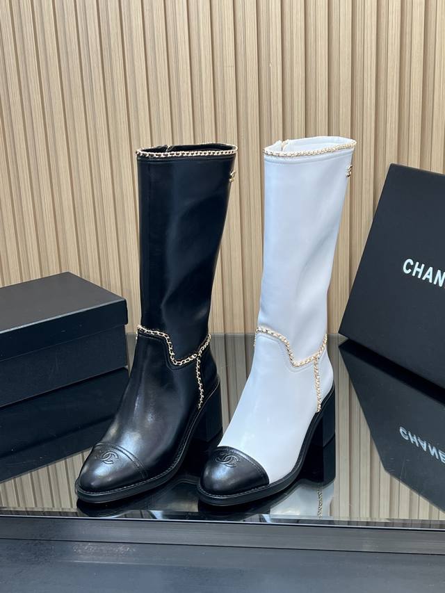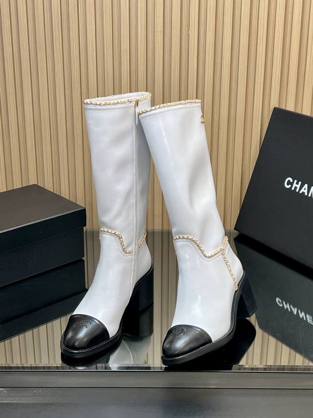 Top-tier version DDD Chanel chunky heeled high-heeled chain boots, long boots/high shoes DDD Look for our detailed real photos DDD Same as boutiques!! This series is now available for sale!! Original purchase and development! DDD The simple round toe design is fantastic DDD A stylish and comfortable piece, with elegant and high-end heavy-duty hardware embellishments! The details and craftsmanship are impeccable! DDD Material: Original custom oil-waxed calfskin DDD Lining: Silk sheepskin lining and insole DDD Sizes: 35-39 40 41 Custom-made, no returns DDD Packaging: Original boutique packaging. DDD