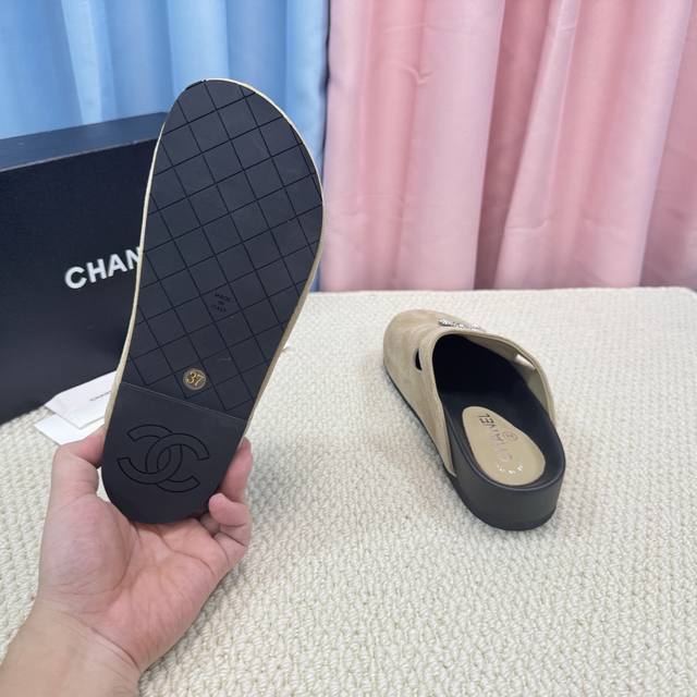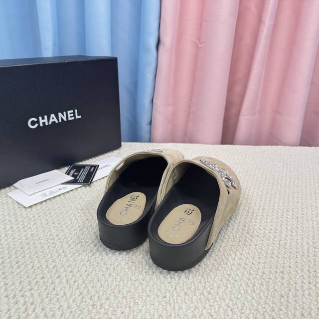 Top-tier version Chanel classic spring/summer platform women's slippers, flat round toe retro slippers, original design, top-end high-end version. Material: Lambskin. Lining: Water-dyed lambskin lining. Outsole: Original foam outsole. Size: 35-40. Sizes 41 and 40 are custom-made and non-refundable.