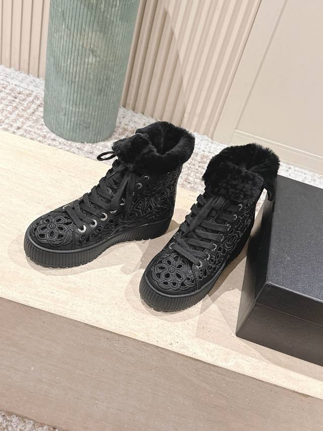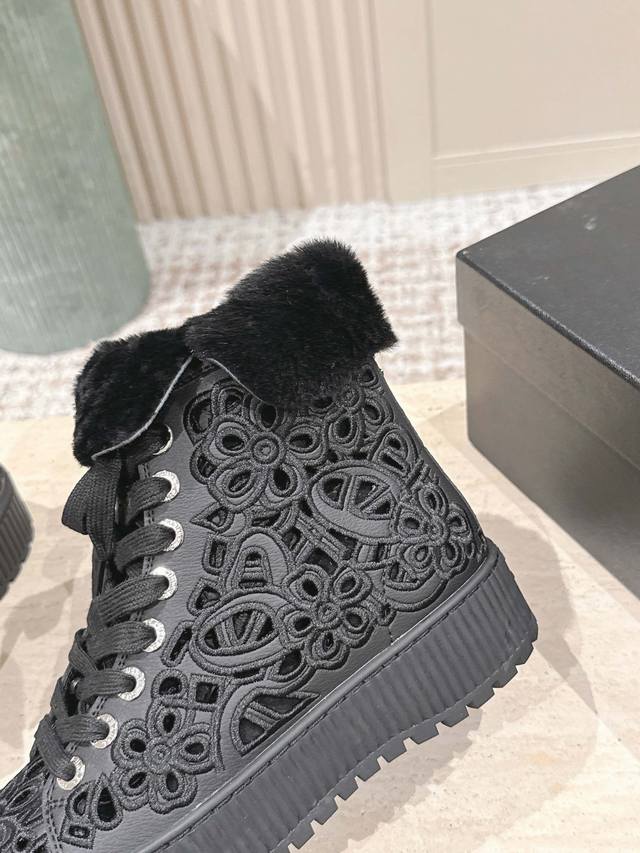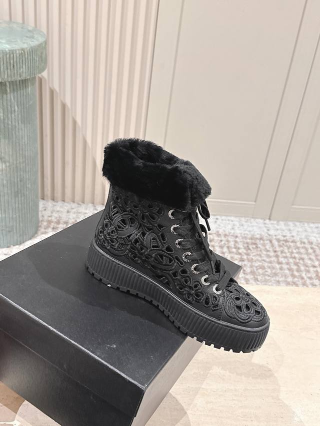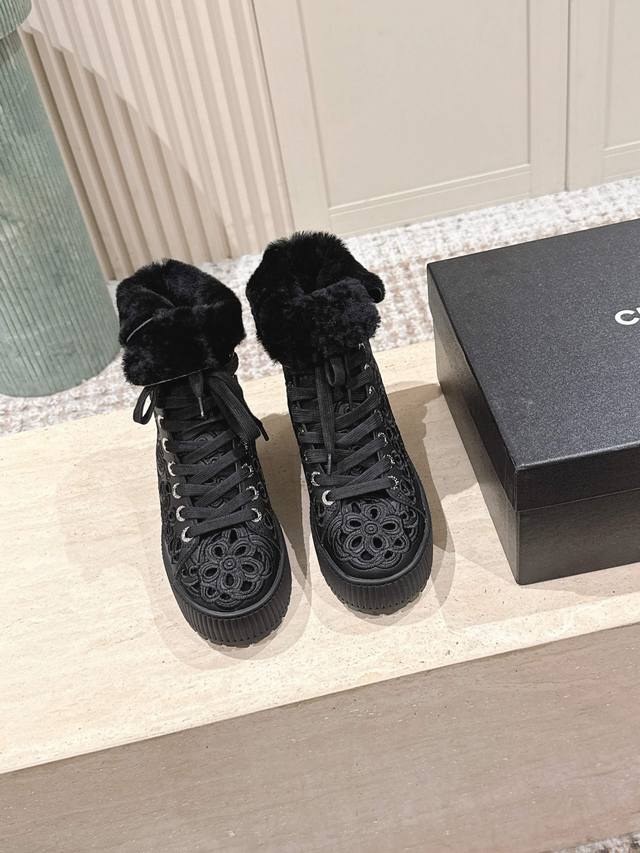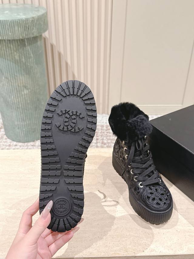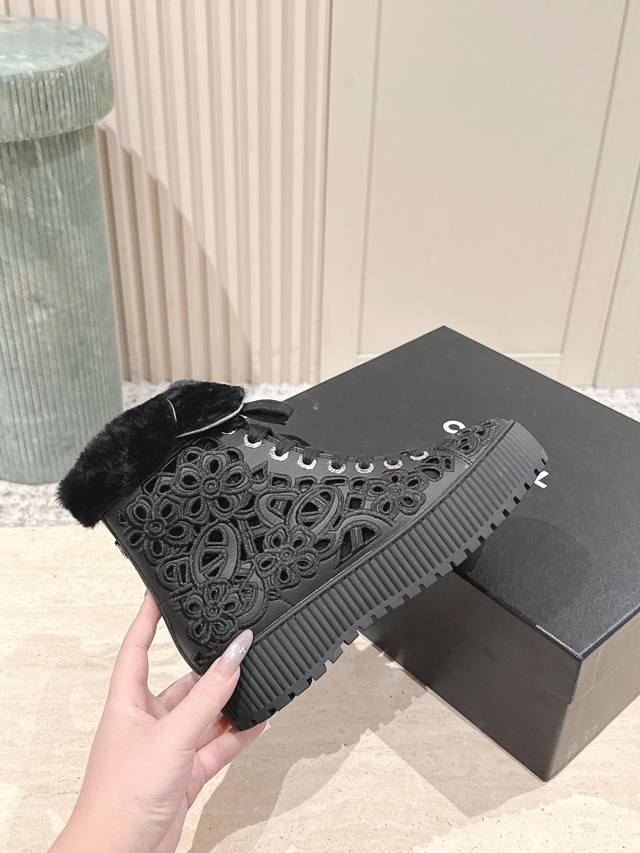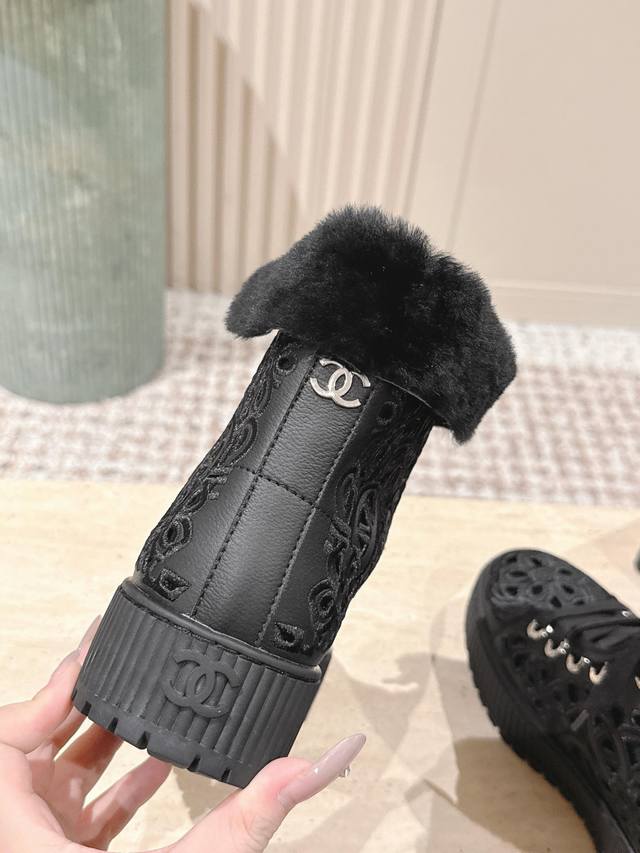 Top-tier version: Hollowed-out wool lining: Single boot without wool lining: Chanel sandals + genuine wool lining DDD A pair of boots that goddesses can wear all year round, high-end and elegant with brand new elements! Brand new craftsmanship! High-difficulty craftsmanship, requiring a laser embroidery machine to complete the exquisite finished product! DDD Two color schemes! All white and all black! Solid color materials with exquisite camellia patterns! Chanel exclusive pattern DDD Cowhide upper + sheepskin lining + TPU outsole + wool lining DDD Women's sizes 35-42 DDD