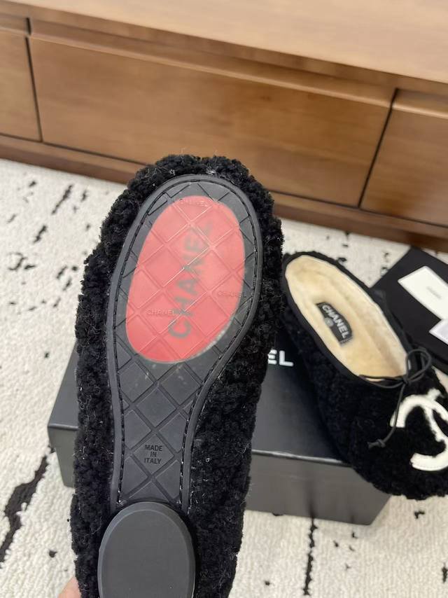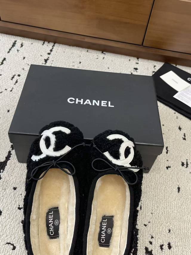 2025 Autumn/Winter Chanel Wool Slippers, Flat, Closed-Toe, New Autumn/Winter Style! Large C logo. Wool slippers are an essential item every autumn and winter. Not only are they warm enough, but they also have a comfortable feel. They look effortlessly chic no matter what you pair them with. Pure wool, no synthetic fibers. Thick and substantial to the touch. Original upper, inner lining, and insole