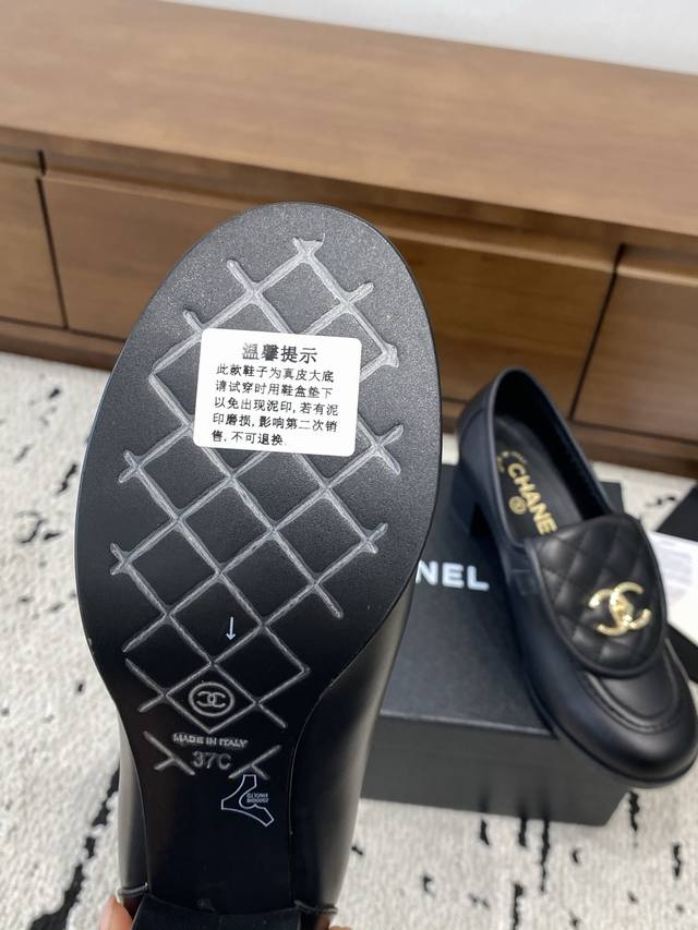 2025 Autumn/Winter New Loafers Chunky Heels, Official Website Synchronized High Version Update, Chanel New Top-Tier Autumn Shoes Series__________________ A must-have Chanel bestseller, a goddess series, possessing the elegant and sophisticated temperament characteristic of Chanel, super stylish and irresistible. Imported cowhide upper, high-quality and textured, original mold, large embroidered hardware buckle, imported lambskin lining and insole, soft and comfortable. Italian genuine leather outsole. Sizes: 35-41, 40, 41. Custom orders are non-refundable and non-exchangeable.