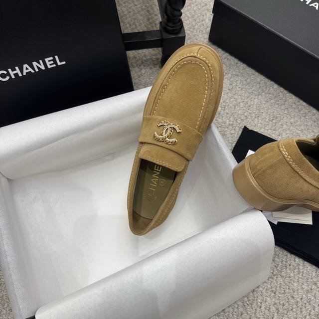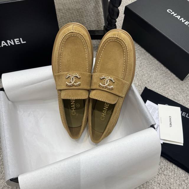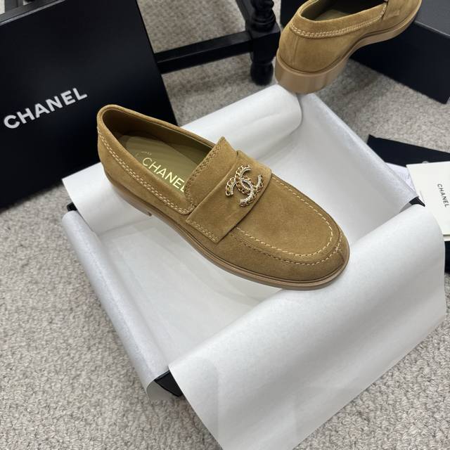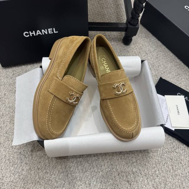 Autumn/Winter Style # Chanel New Double C Buckle Loafers - A Must-Have for Autumn/Winter! A goddess-themed collection, these loafers possess Chanel's signature elegant and sophisticated style. Super stylish and irresistible! Upper: Imported cow suede; Original molded hardware and logo; Lining: Mixed sheepskin; Outsole: Italian genuine leather; Size: 35-41; 40-41 (Custom made).