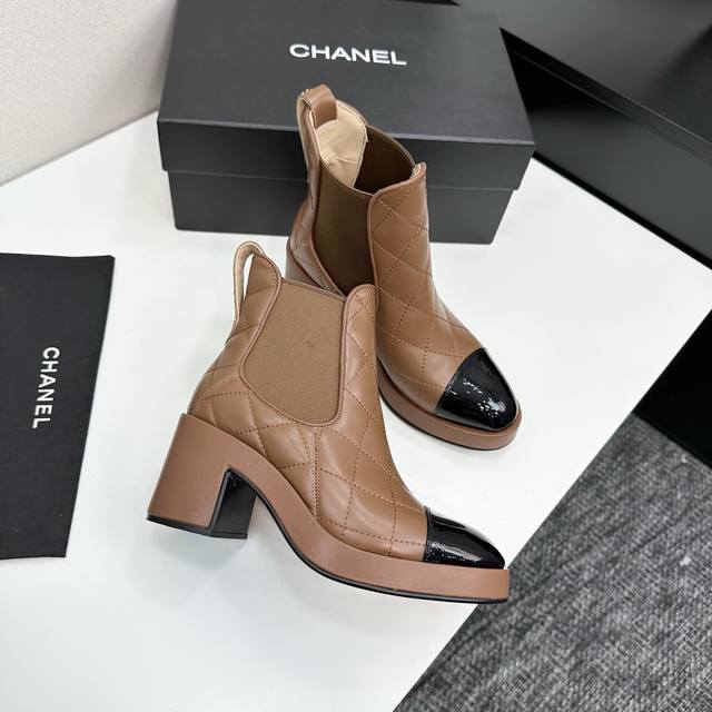 Chanel 2025 Fall/Winter Platform Ankle Boots - A Must-Have from Chanel, Exclusive Mold Design, Hardware, Logo Buckle, Material: Lambskin, Lining: Lambskin, Outsole: Italian Genuine Leather, Heel Height: 5cm, Sizes: 35-39, 40, Custom Made.