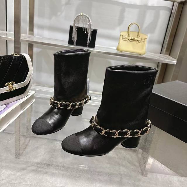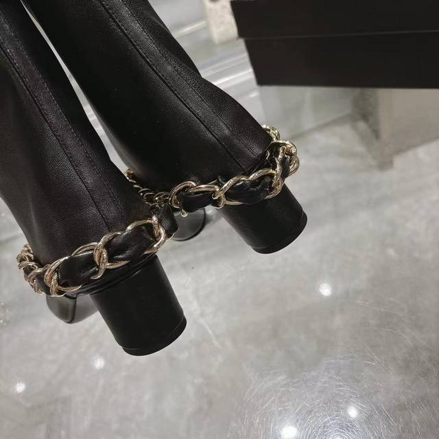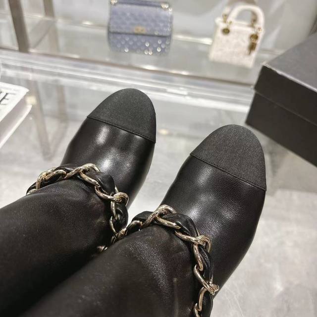 Chanel 25B Fall/Winter Runway Style Turn-Up Cuff Chunky Heel Boots Ddd Iconic large chain design, classic color blocking, large embroidered logo Ddd Upper: Imported sheepskin Ddd Sole: Italian genuine leather Ddd Heel height: 5.5cm Ddd Sizes: 35-39, 40, 41, 42 Custom orders, no returns or exchanges Ddd Factory price p DDD