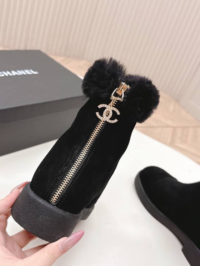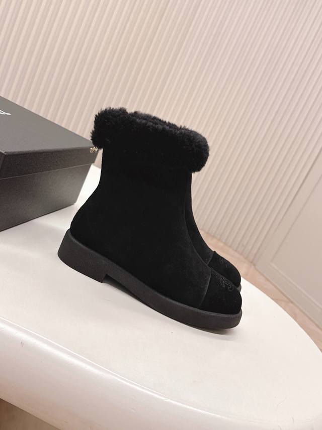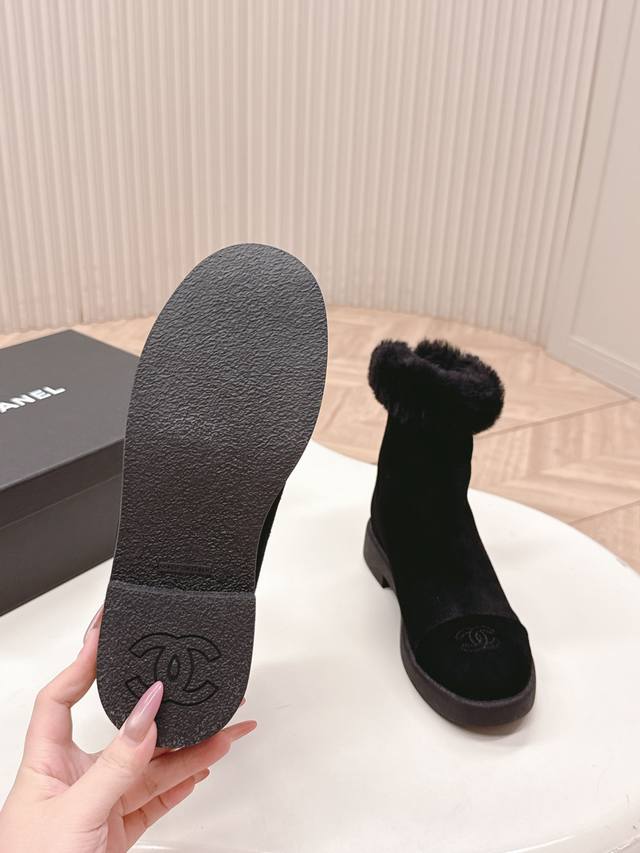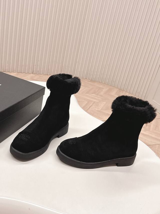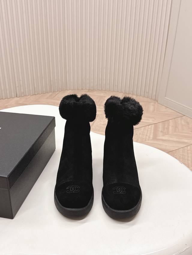 Chanel 25K Autumn/Winter New Style Furry Snow Boots - Classic, High-End, Elegant, Gentle, and Free-spirited. Super stylish and comfortable on the feet, thick sole for added height and a slimming effect, enhancing your overall look. Material: Imported sheepskin, soft and comfortable. Lining: Wool. Sole: Original outsole. Sizes: 35-40.