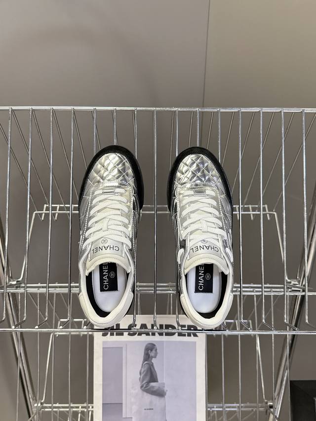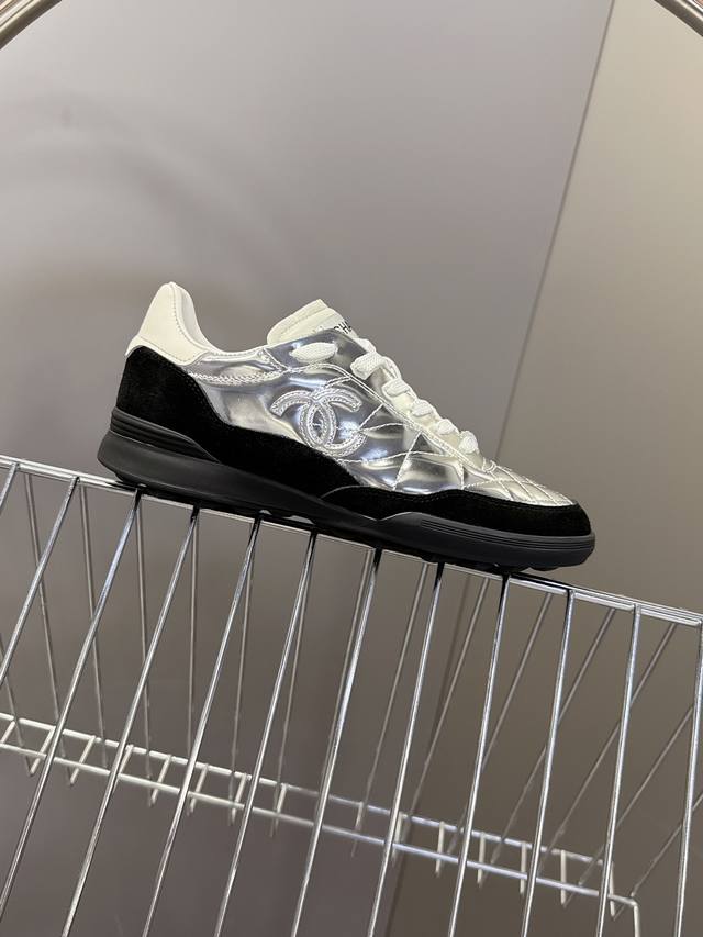 Chanel 25N quilted baseball shoes, tennis shoes, sneakers. Original purchase, developed and manufactured. The latest hidden Chanel tennis shoes feature soft quilted lambskin, a large tongue, and the classic double C logo, exuding a retro feel. The most versatile black and white colorway is a must-have casual shoe for any Coco girl. The sole has a studded design and is super soft. Comes with exquisite boutique packaging. Material: Original custom lambskin quilted pattern. Lining: Imported custom lambskin + mesh lining. Outsole: Original molded studded rubber material. Size: Women's 35-40.