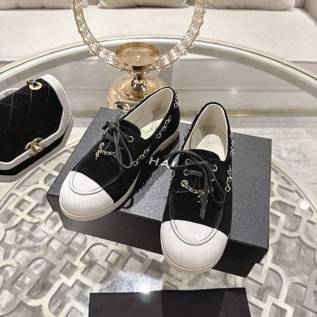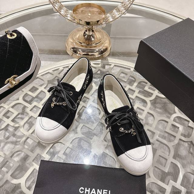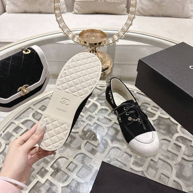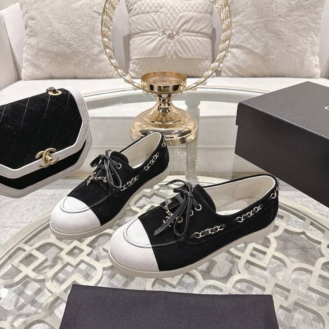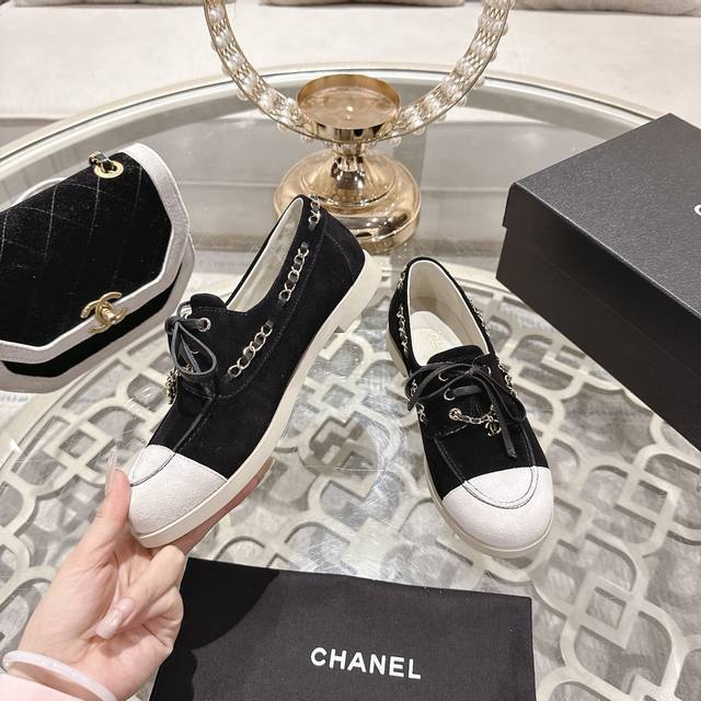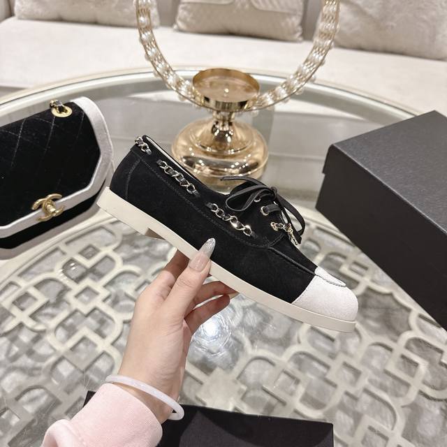 Chanel 26C Early Spring New Color Block Suede Loafers DDD Super soft and incredibly comfortable loafers, perfect for walking 10,000 steps a day without foot pain DDD These Chanel flat casual shoes are arguably the most stylish shoes in recent years. The clever use of leather and chain detailing creates a unique and instantly appealing look DDD The suede color blocking is versatile and suitable for everyday wear. Most importantly, the soft sole makes them incredibly comfortable and easy to wear. You'll be pleasantly surprised whenever you try them on DDD It's a rare shoe that perfectly blends comfort, style, and versatility DDD Upper: Cow suede DDD Lining: Sheepskin DDD Outsole: Molded, wear-resistant rubber outsole DDD Sizes: 35-41 Size 41 (custom orders are non-refundable and non-exchangeable) DDD Packaging: Latest boutique gift box packaging DDD Factory price (pp): DDD