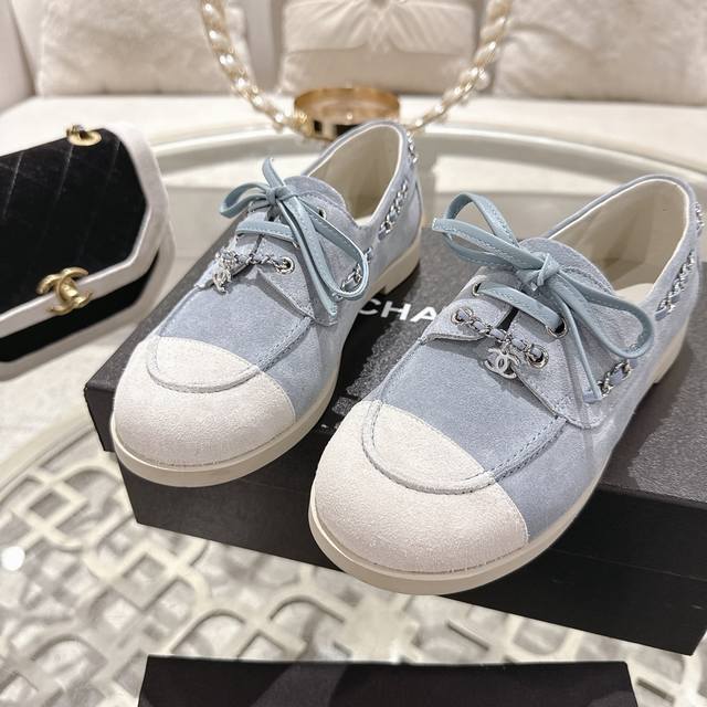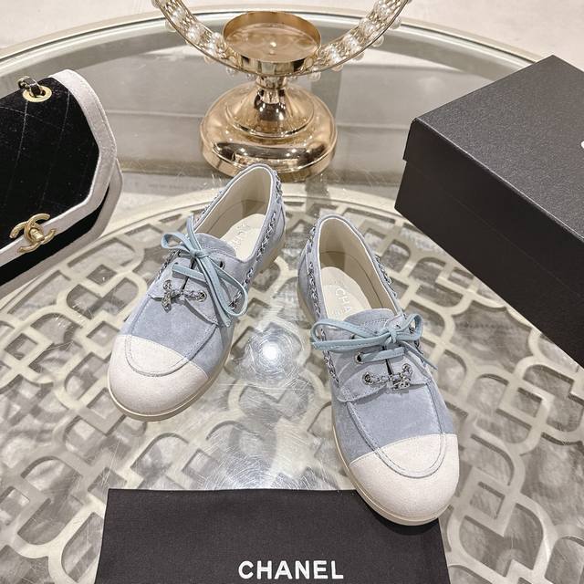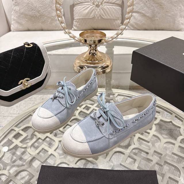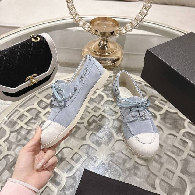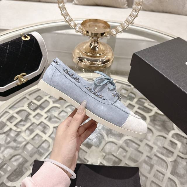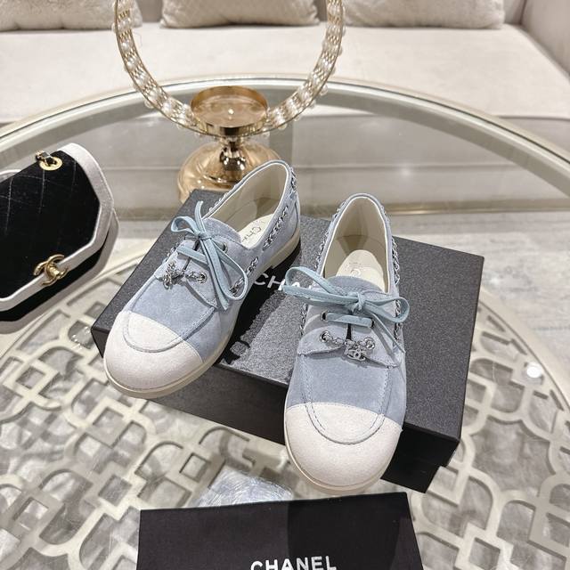 Chanel 26C Early Spring New Color Block Suede Loafers DDD Super soft and incredibly comfortable loafers, perfect for walking 10,000 steps a day without foot pain DDD These Chanel flat casual shoes are arguably the most stylish shoes in recent years. The clever use of leather and chain detailing creates a unique and instantly appealing look DDD The suede color blocking is versatile and suitable for everyday wear. Most importantly, the soft sole makes them incredibly comfortable and easy to wear. You'll be pleasantly surprised whenever you try them on DDD It's a rare shoe that perfectly blends comfort, style, and versatility DDD Upper: Cow suede DDD Lining: Sheepskin DDD Outsole: Molded, wear-resistant rubber outsole DDD Sizes: 35-41 Size 41 (custom orders are non-refundable and non-exchangeable) DDD Packaging: Latest boutique gift box packaging DDD Factory price (pp): DDD
