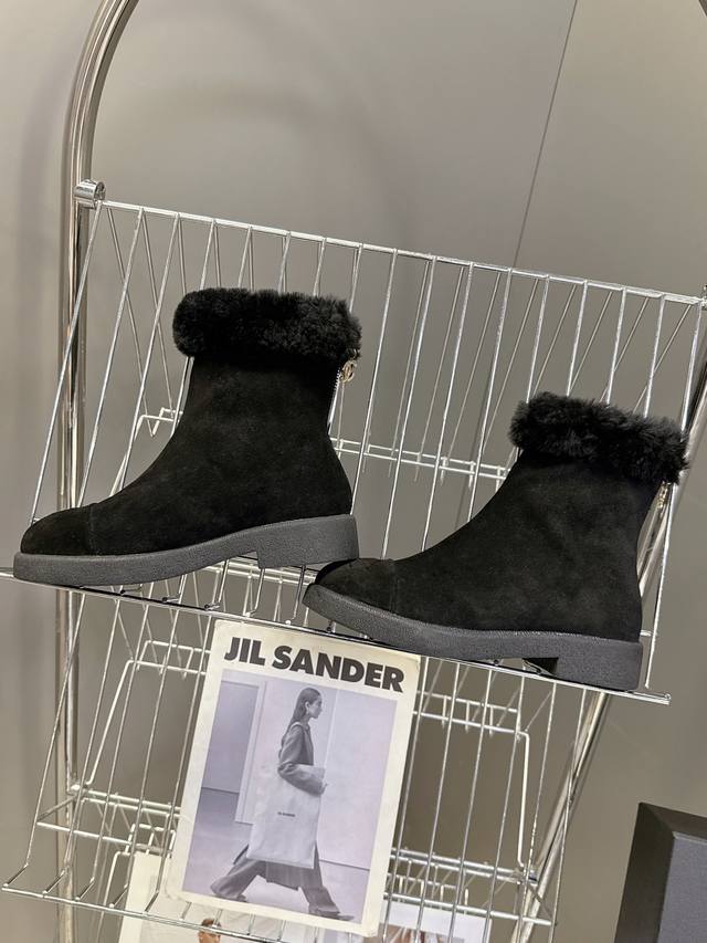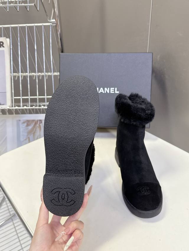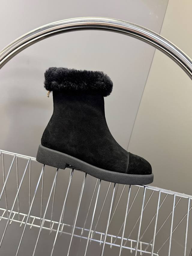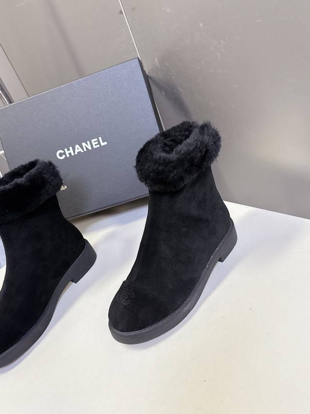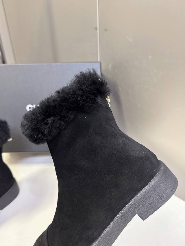 Many celebrities and influencers have been raving about these. These stylish and elegant Chanel furry shoes are a classic design element of the brand, truly stunning! The short boot shaft is straight and stylish without sacrificing softness, and they suit all body types. The exquisite logo embellishment adds a touch of sophistication and class, making them look cool and stylish on the feet, and they also make your legs look longer. The upper is made of custom original high-gloss cowhide, and the softness and feel are unparalleled. The genuine sheepskin lining is more breathable, non-slip, and comfortable. Original molded non-slip outsole. Size: 35-40