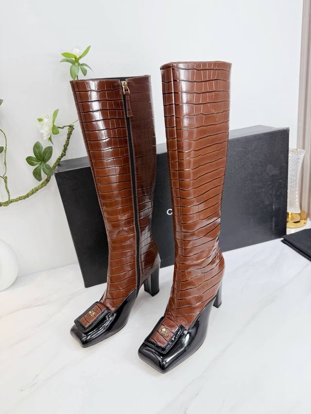 Factory direct. Chanel 2026 Autumn Martin Boots, Sandals, Slippers, Latest Style. European import & Chanel's newest and most fashionable design exudes lasting charm. Original design, supports comparison with any market. Smooth and natural lines , perfectly replicating the original look. Many celebrities recommend this as a must-have item for spring. Super comfortable to wear, truly amazing! 1. Material: Imported stone-patterned cowhide. 2. Lining: Imported sheepskin. 3. Outsole: Imported Italian original genuine leather outsole, heel height 8.5, boot shaft 16 inches. 4. Sizes: 35-39, 40-41 (customizable).