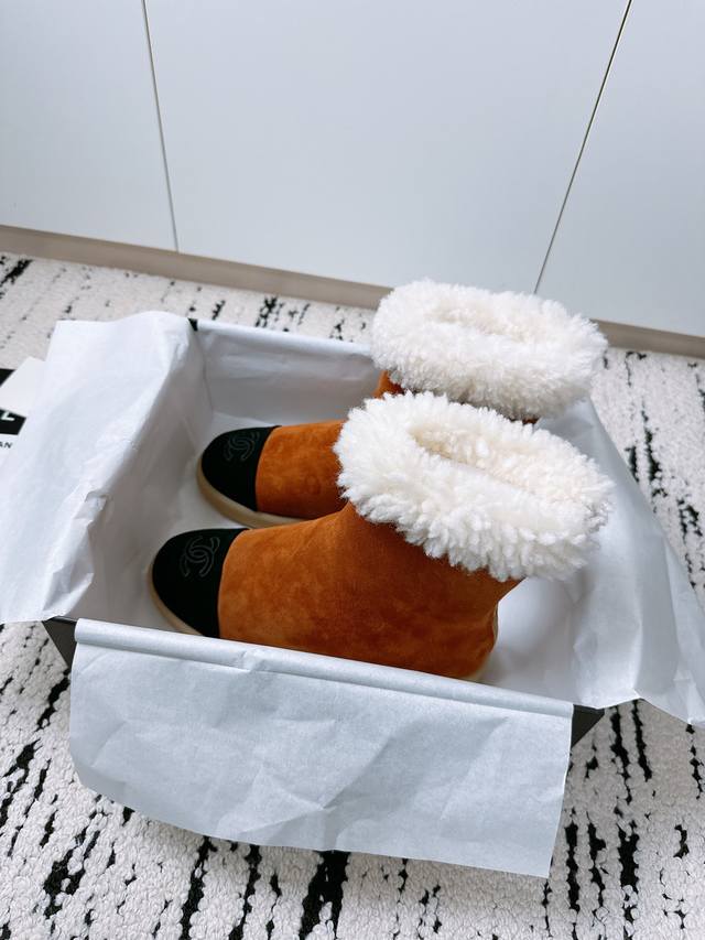 Factory direct price women's clothing, shoes, sportswear, original single item, Chanel 26A, latest official website snow boots, optional airplane box, add 10 yuan, boutique quality, all materials are customized according to the original! Purchased genuine products and developed, Chanel 2026 Fall/Winter furry snow boots, Chanel Fall/Winter new real wool slippers, boots, Chanel 2026 Fall/Winter most beautiful snow boots, bar none, classic, good-looking and warm snow boots with super strong warmth! This winter, you only need these, they are really super beautiful and fairy-like~ Material and craftsmanship: The upper is made of custom suede sheepskin, and the insole is made of pure wool. It feels very soft and comfortable! The sole is the original TPU outsole. Size: 35-39, 40.41 is customized and non-refundable.