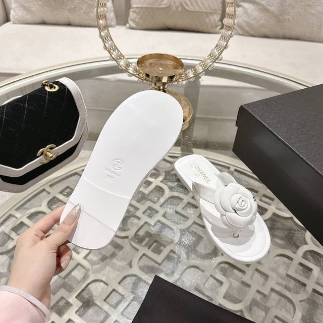 Factory direct price women's shoes sports original Chanel 25Ss new arrival DDD Camellia flip-flops DDD This series is absolutely stunning, how can it be so beautiful! DDD It's the perfect summer outfit, both sweet and edgy~ DDD Upper: Imported cow patent leather DDD Lining: Lambskin DDD Outsole: Italian imported genuine leather DDD Sizes: 35-39 40 41 42 Customized DDD Packaging: Latest boutique gift box packaging DDD