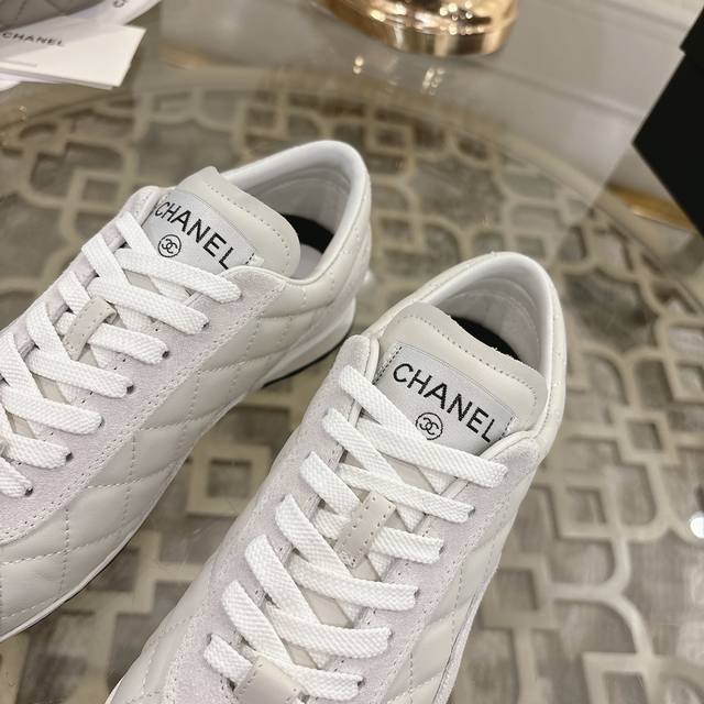 Factory direct price women's shoes sports original Chanel quilted baseball shoes tennis shoes casual sports shoes DDD Original purchase and development, the latest hidden Chanel tennis shoes soft quilted pattern soft lambskin with a large tongue and classic double C logo, full of retro feel, and the most versatile black and white color scheme. A must-have casual shoe for Coco girls. The sole has a stud design and is super soft DDD Material: Original custom lambskin quilted pattern DDD Lining: Imported custom lambskin + mesh lining DDD Outsole: Original molded studded rubber material DDD Sizes: Women's 35-40 DDD Packaging: Exquisite packaging from the store DDD
