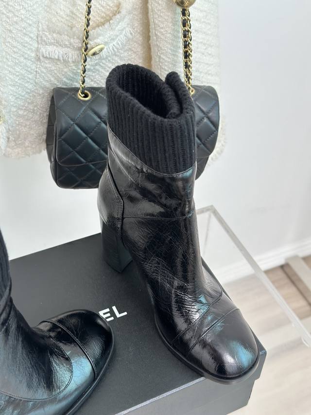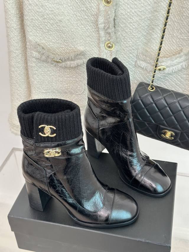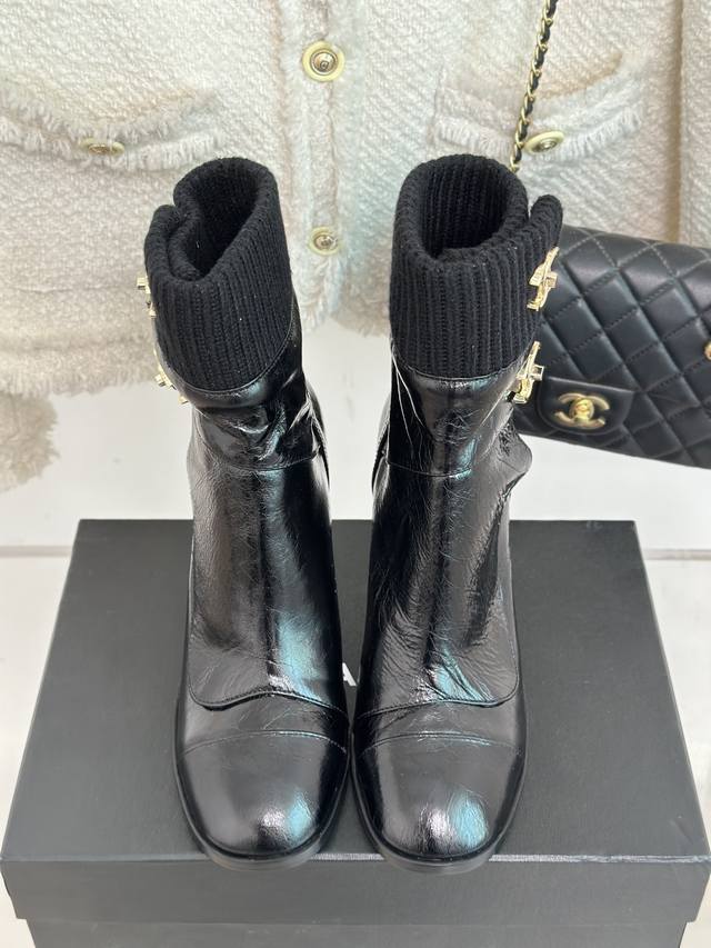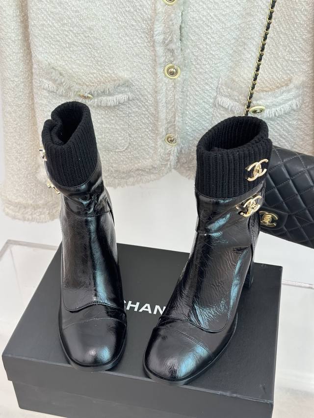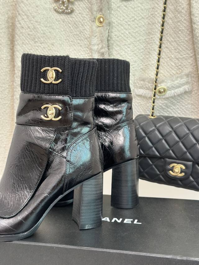 Factory Price Chanel* | Classic Autumn/Winter Double C Knitted Ankle Boots with Backpack Buckle. Custom cowhide upper, mixed sheepskin lining, Italian imported genuine leather outsole. Heel height: 8cm. Sizes: 35-39, 40, 41 (Custom Made).