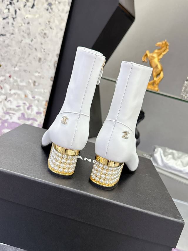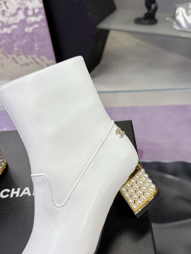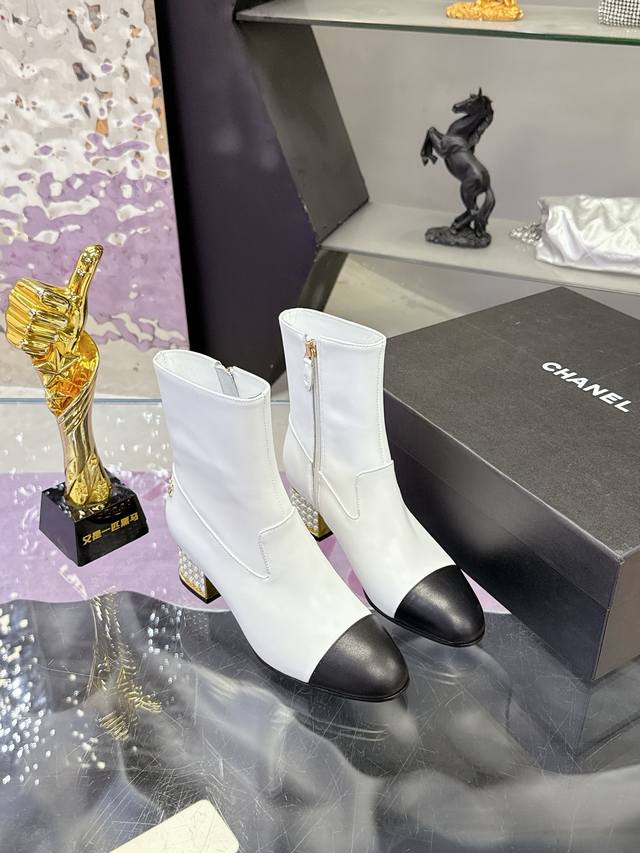 Factory Price: DDD Chanel Fall/Winter 2025 New Round Toe Chunky Heel Pearl Ankle Boots DDD Unique label and elastic buckle design, suitable for all foot shapes, slimming and versatile~ Classic style, creating a strong sense of luxury. Very delicate and playful on the feet, and very feminine~ Full set of boutique packaging DDD Chanel boot series DDD Imported lambskin upper with smooth lines and a well-proportioned shape, clear logo embossing, matte lambskin insole, Italian genuine leather outsole DDD Heel height: #5Cm DDD Size: #35-41 40 41 Custom orders are non-refundable DDD