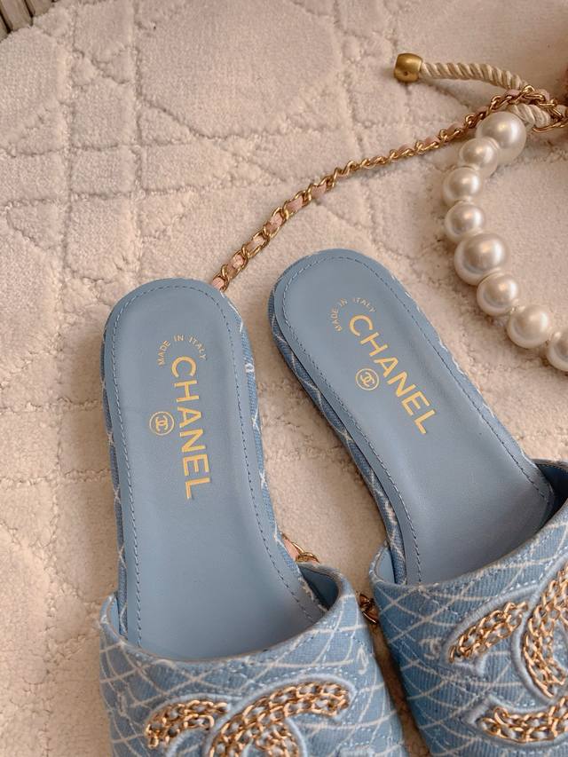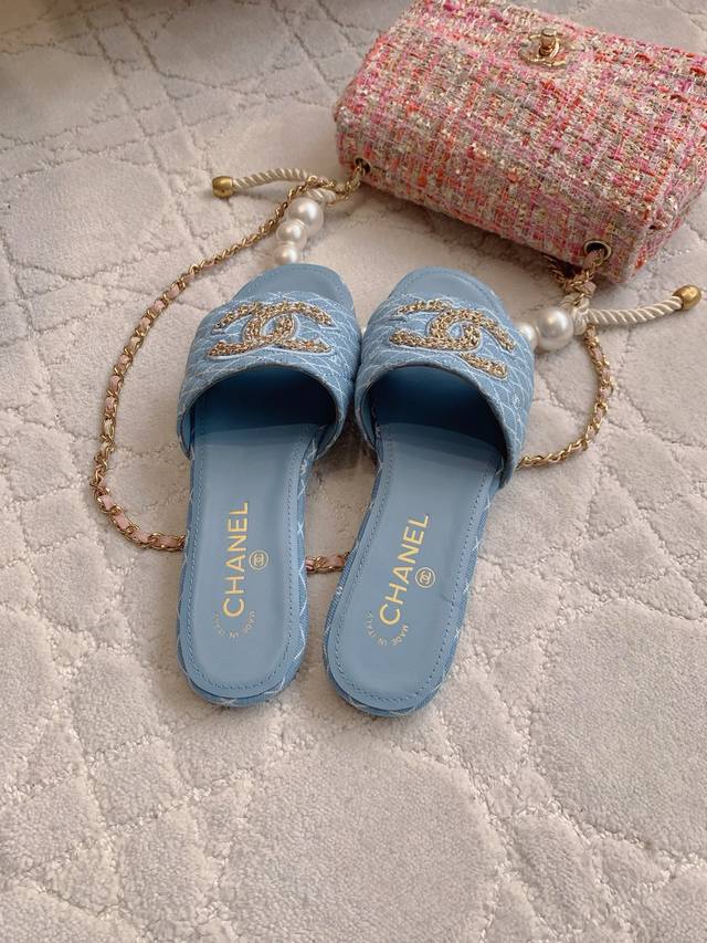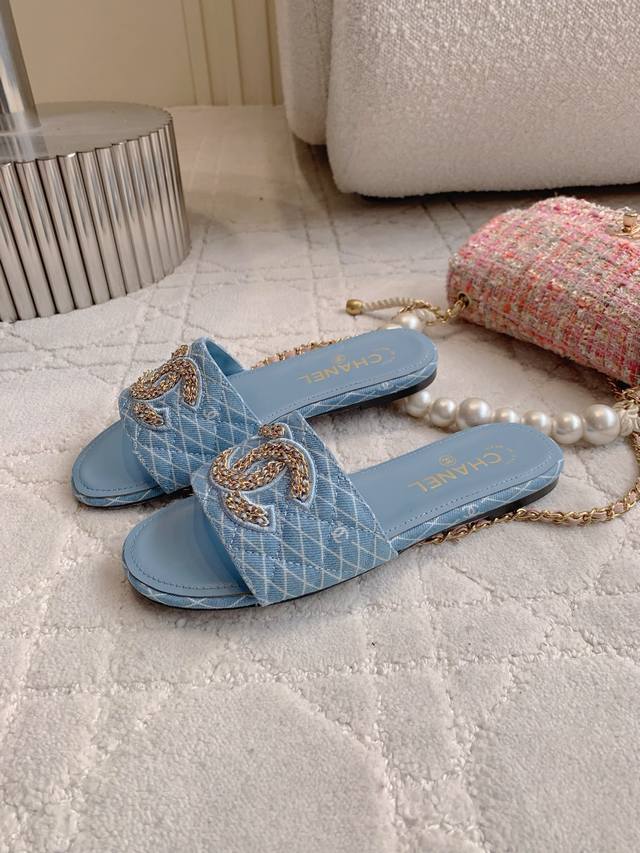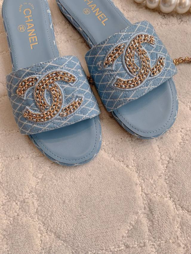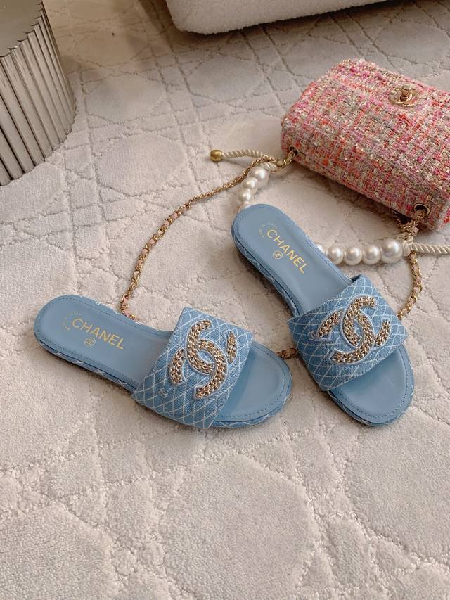 Factory Price p DDD Chane* New Flat Sandals Classic Resort Style Double C Logo Decoration Simple and Refreshing Versatile Item DDD Upper: Calfskin Denim Lining: Sheepskin Insole: Italian Genuine Leather Outsole Sizes: 35-39 34 40 41 Custom Made DDD